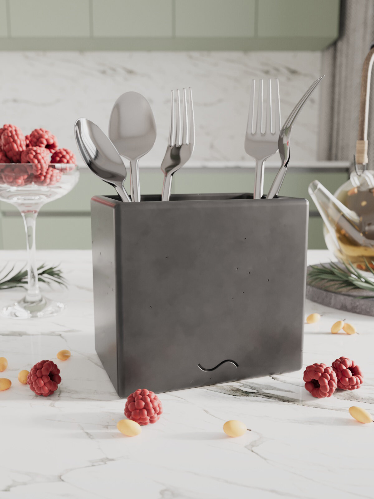 Купить Кухонный стакан Emily Duo, подставка для столовых приборов, 12х8х11 см, бетон, черный глянцевый с доставкой по всей России.