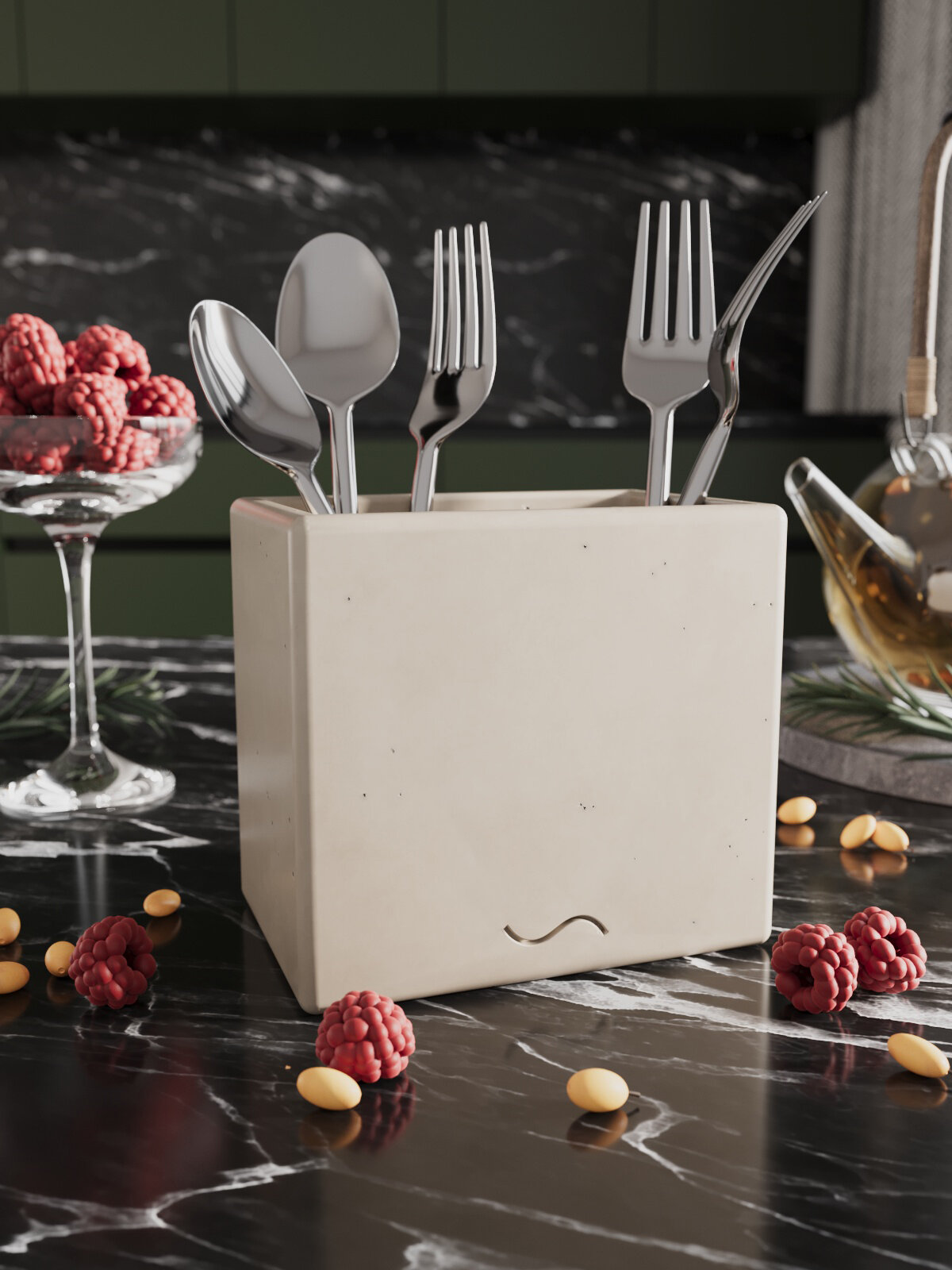 Купить Кухонный стакан Emily Duo, подставка для столовых приборов, 12х8х11 см, бетон, кремовый глянцевый с доставкой по всей России.