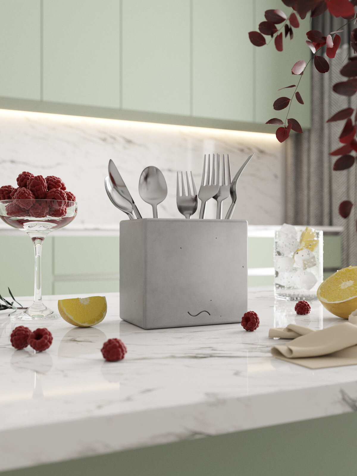 Купить Кухонный стакан Emily Duo, подставка для столовых приборов, 12х8х11 см, бетон, серый глянцевый с доставкой по всей России.