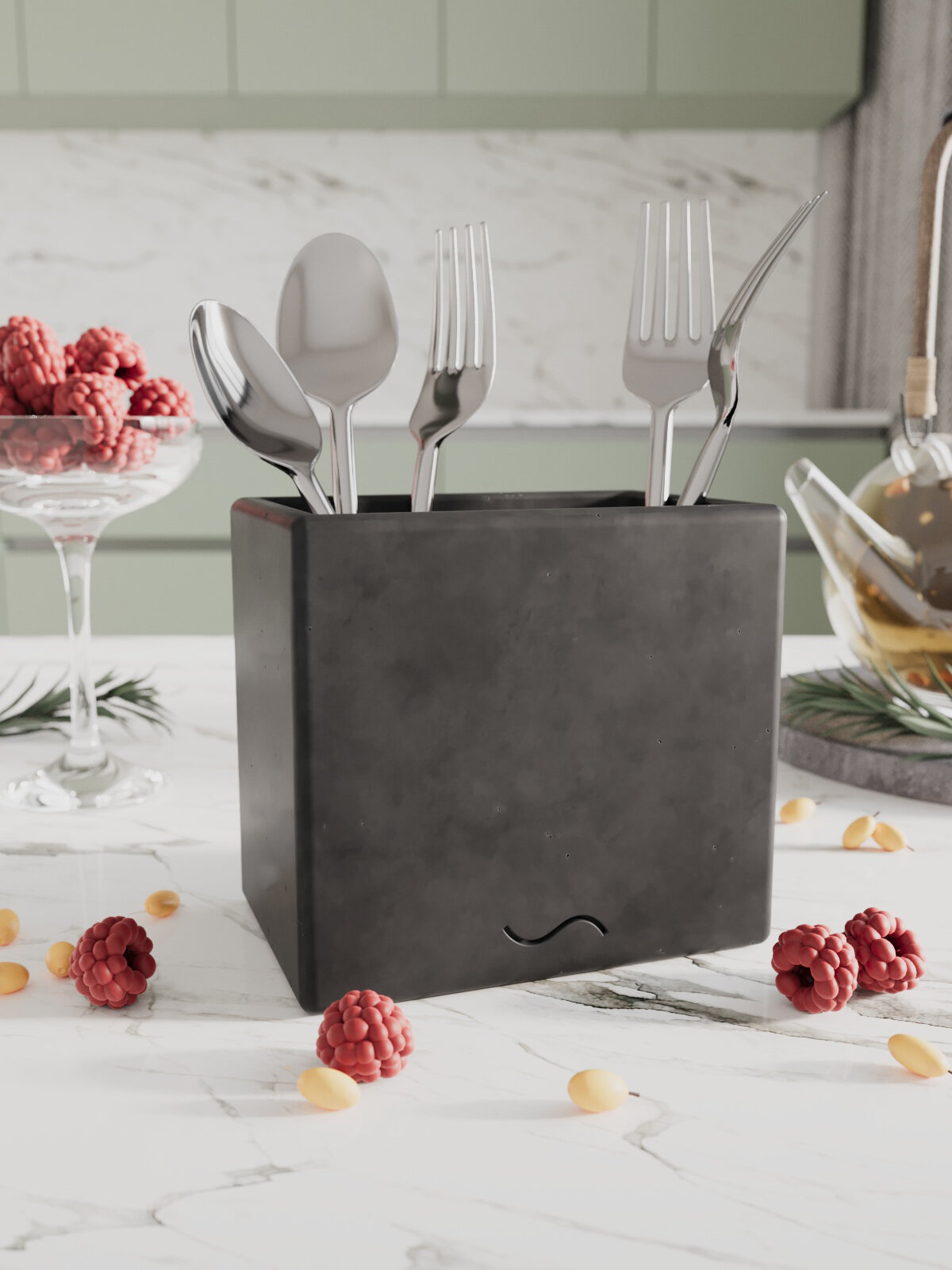 Кухонный стакан Emily Duo, подставка для столовых приборов, 12х8х11 см, бетон, темно-серый матовый: сравнение цен, характеристики, фото, актуальное наличие и цены.