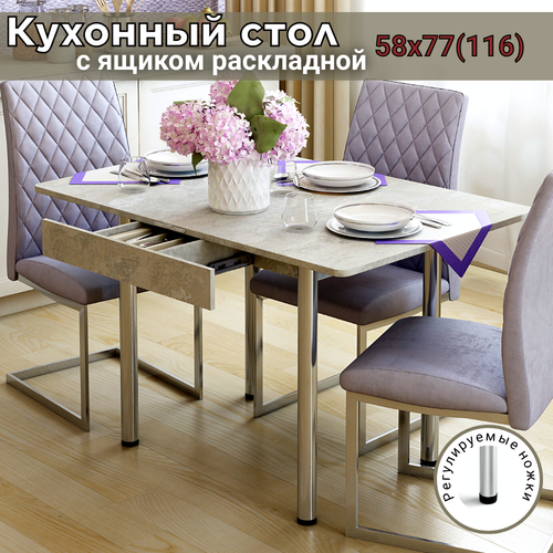 77х58 (116) см Раскладной кухонный стол с ящиком, для кухни, столовой, дачи и дома, с металлическими ножками, слейт