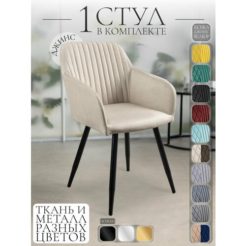 Кухонный стул-кресло Grande , цвет молочный под джинсу, черные ножки, узор полосы: сравнение цен, характеристики, фото, актуальное наличие и цены.