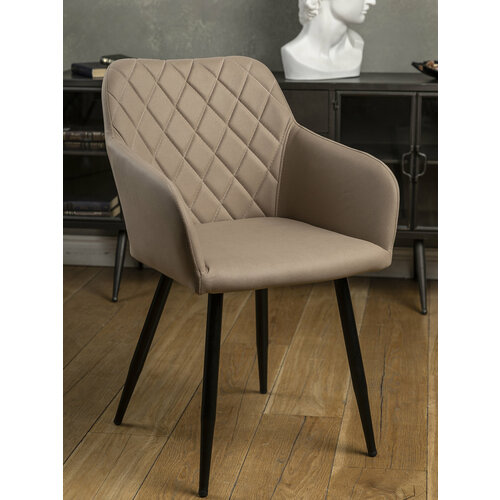 Купить Кухонный стул кресло лофт Grande, цвет бежевый, велюр под кожу, черные ножки, узор ромбы с доставкой по всей России.