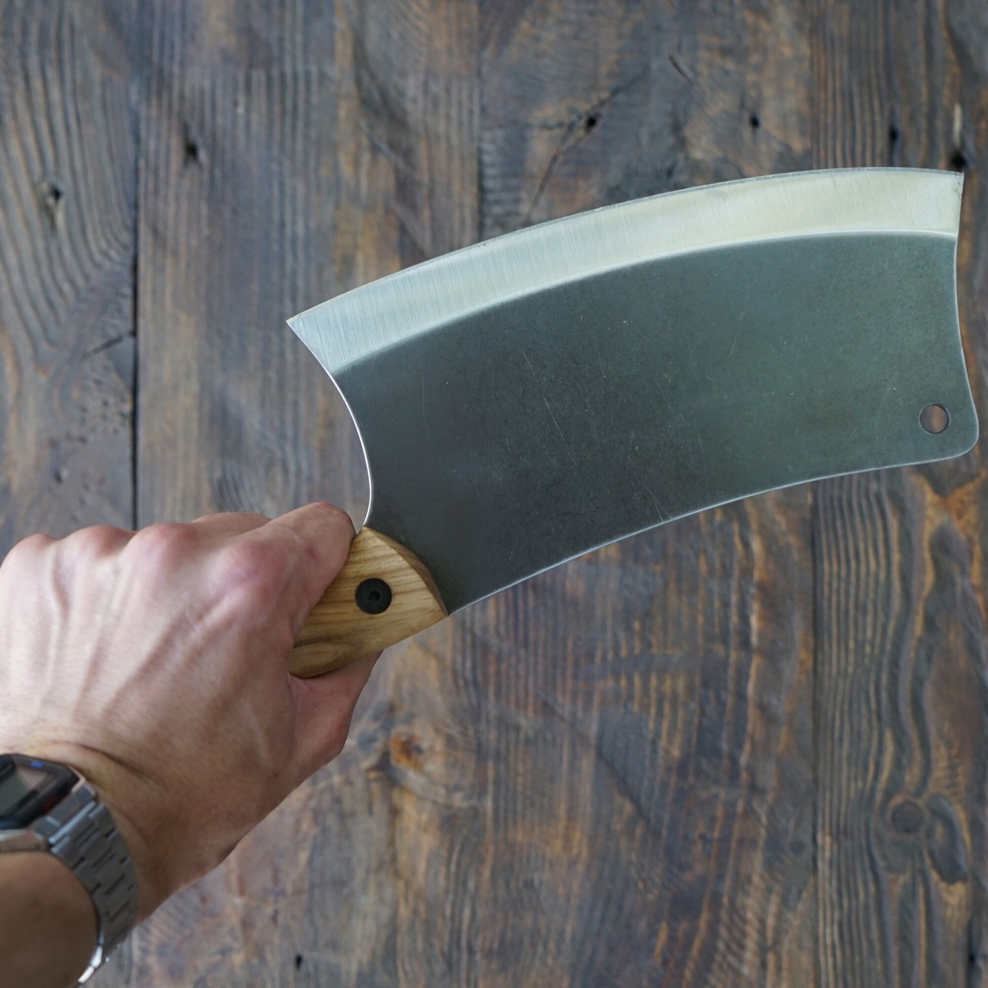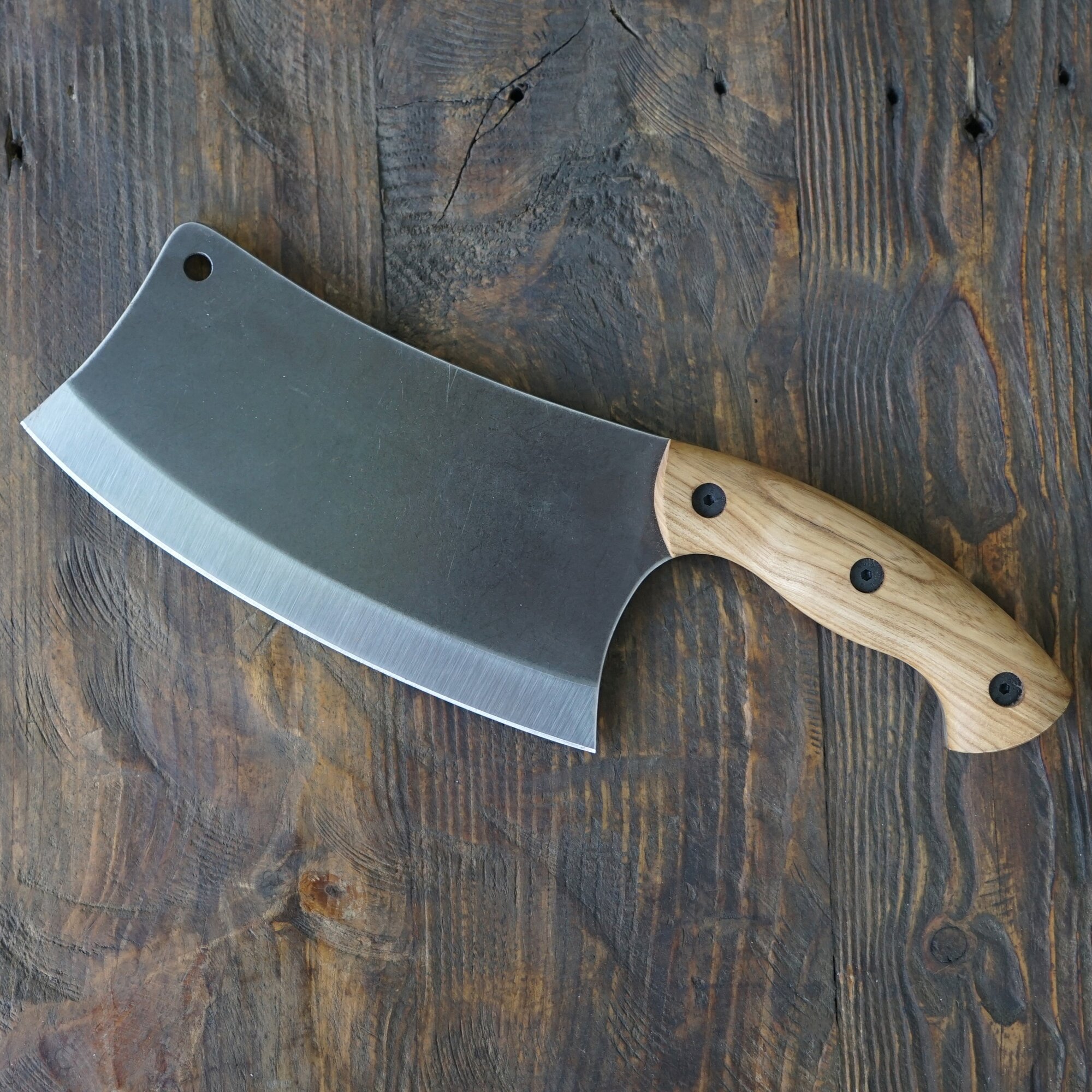 Рукоятка тесака выполнена из ясеня, что придает ножу не только эстетическую привлекательность, но и обеспечивает удобство и комфорт при использовании.