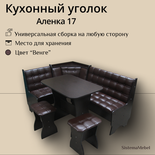 Кухонный уголок Аленка 17 лдсп Венге кож зам терра эф 221 коричневый - это многофункциональный комплект, состоящий из угловой скамьи, стола и двух табуретов.