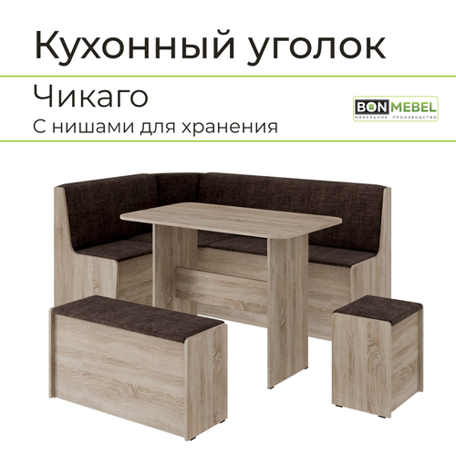 Кухонный уголок Чикаго BONMEBEL Дуб сонома /коричневый, 159х109,8х79,8 см: сравнение цен, характеристики, фото, актуальное наличие и цены.