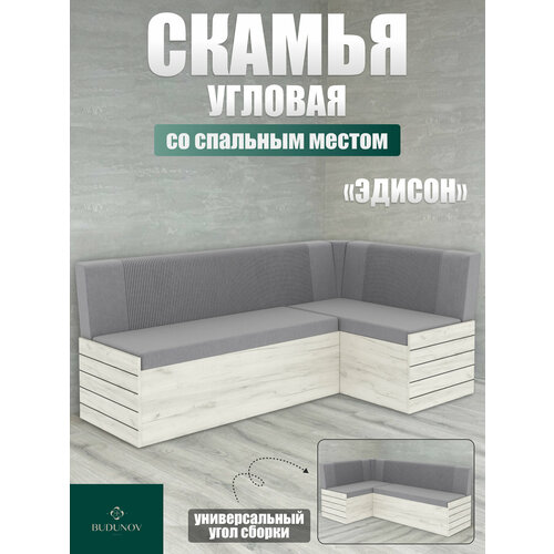 Кухонный уголок Эдисон, BUDUNOV GROUP, Дуб Крафт белый/ТК Серый, скамья угловая со СПАЛЬНЫМ МЕСТОМ, 194х114х82 см: сравнение цен, характеристики, фото, актуальное наличие и цены.