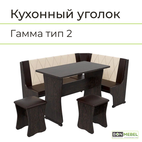 Кухонный уголок Гамма Тип 2 BONMEBEL Дуб Венге/КЗ Шоколад/Беж,150x110x80 см: сравнение цен, характеристики, фото, актуальное наличие и цены.