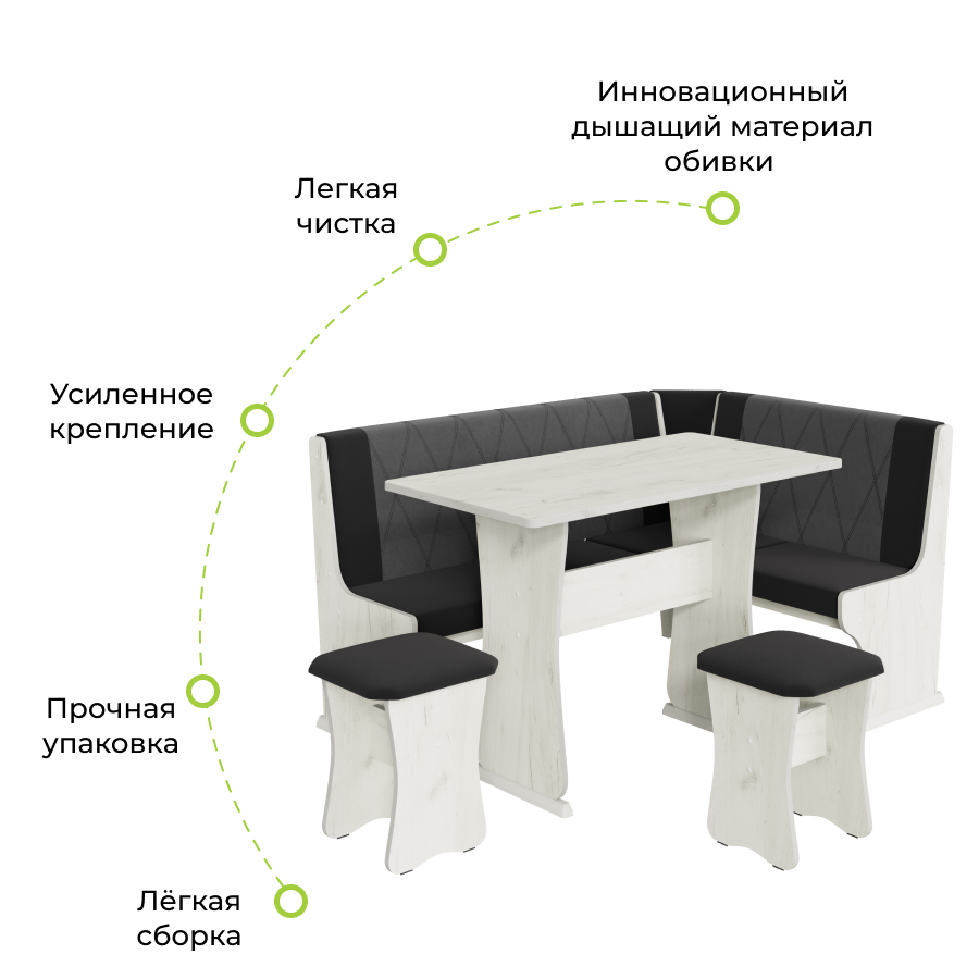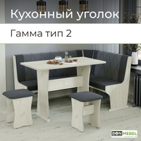 Кухонный уголок BONMEBEL Гамма Тип 2, ЛДСП Дуб Крафт белый/ТК Темно-серый серый, угловой, стол, диван, табуреты: сравнение цен, характеристики, фото, актуальное наличие и цены.