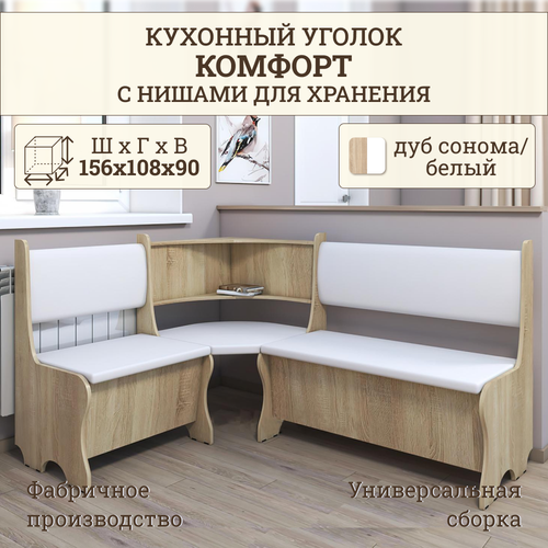 Купить Кухонный уголок Комфорт, цвет дуб сонома/белый, 156х108х90 см с доставкой по всей России. Кухонный уголок Комфорт, цвет дуб сонома/белый, 156х108х90 см: сравнение цен, характеристики, фото, актуальное наличие и цены.