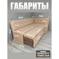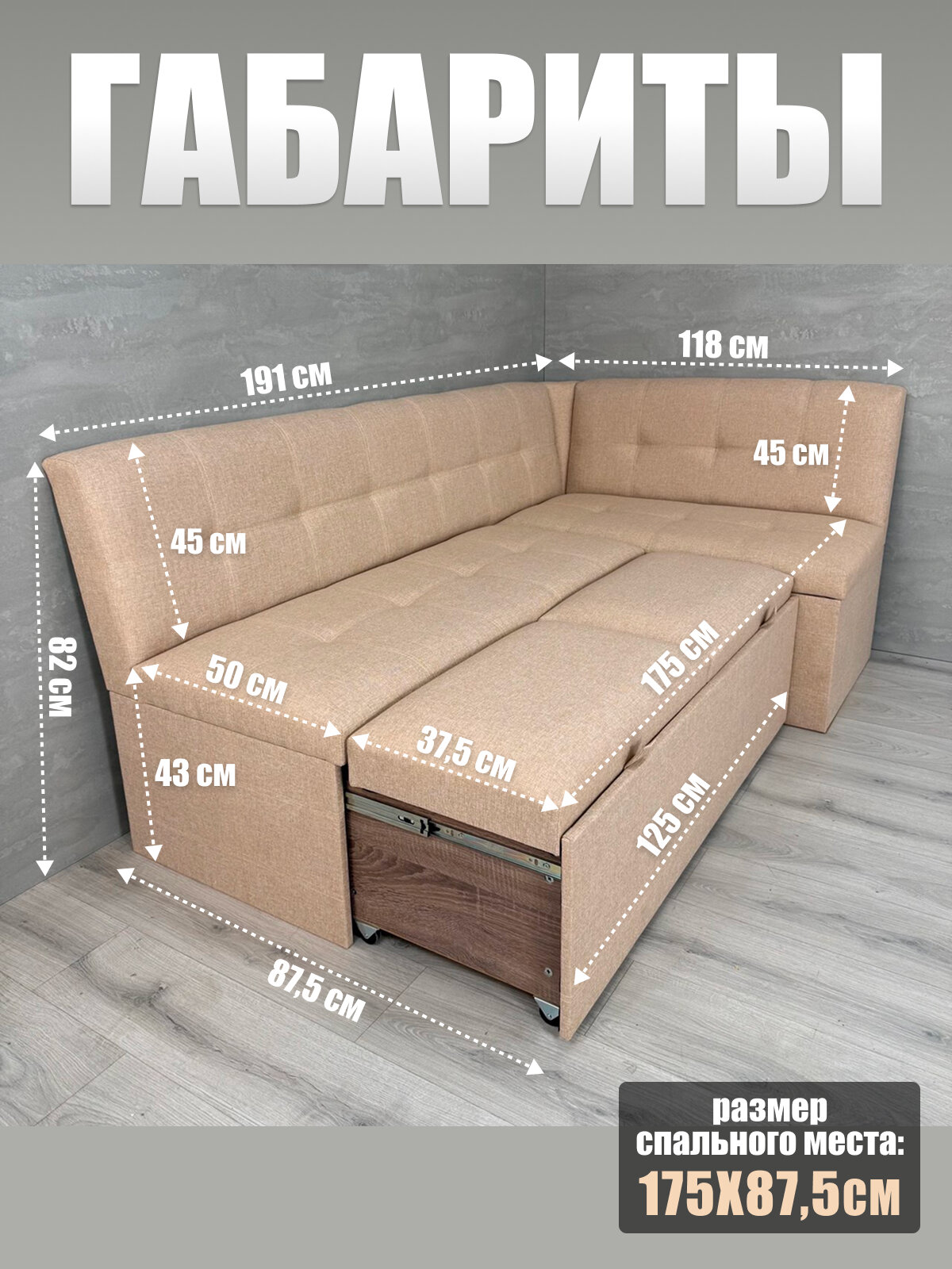 Кухонный уголок Квадро тип 1 исп 2, BUDUNOV GROUP, ТК Капри бежевый, скамья угловая со спальным местом,191х118х82 см.: сравнение цен, характеристики, фото, актуальное наличие и цены.