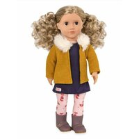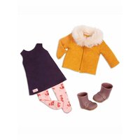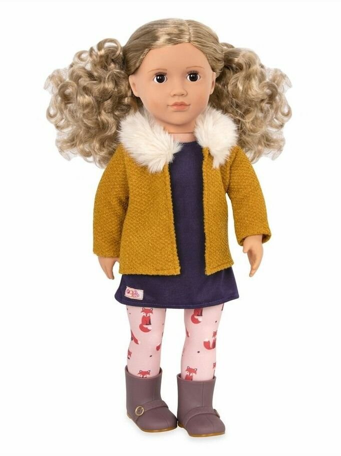 Наряд Флоренс состоит из уютной куртки с воротником из искусственного меха и повседневного платья без рукавов. Также в комплекте с куклой идут розовые леггинсы с лисьим принтом, которые прекрасно сочетаются с другими нарядами от Our Generation.