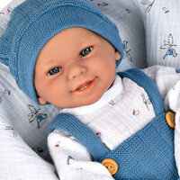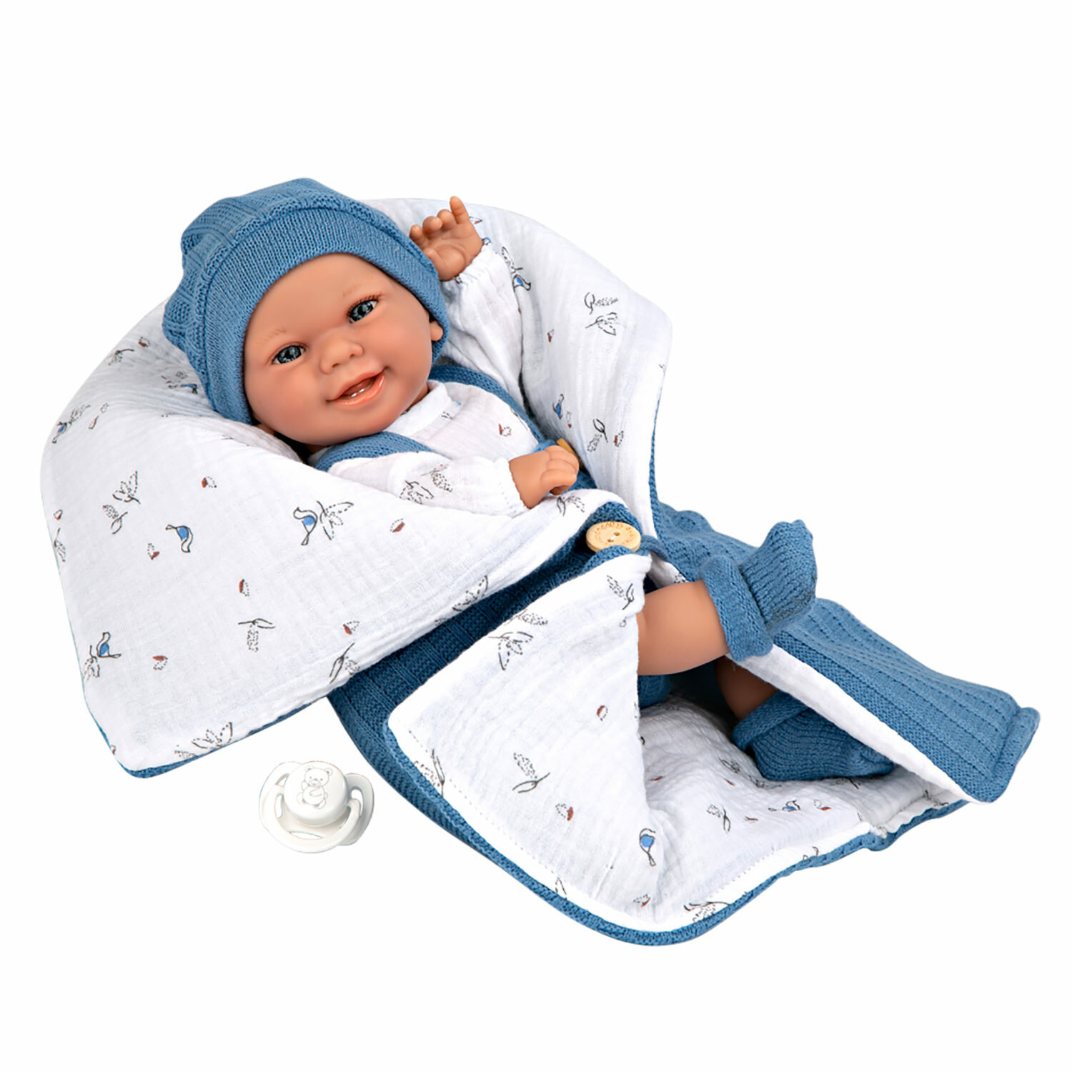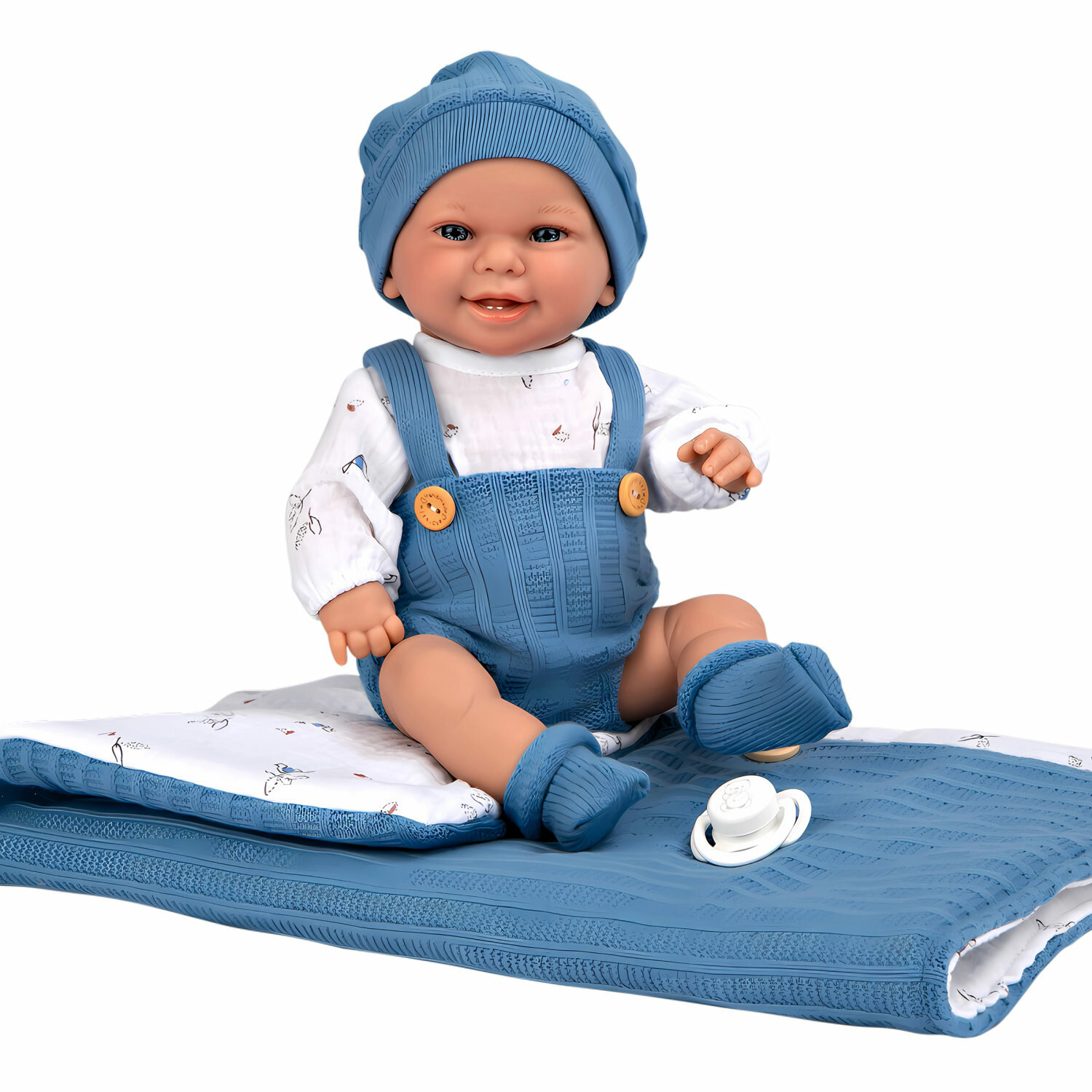 Купить Кукла Arias ELEGANCE BABYTO мальчик винил 33 см, в синем комбинезоне, в шапочке и носочках, с соской, пледом с доставкой по всей России.