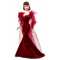 Коллекционная кукла Барби Скарлетт О’Хара – главная героиня фильма «Унесённые Ветром». Скарлетт выглядит просто сногсшибательно в этом скандальном платье, в котором она пришла на вечеринку по поводу дня рождения Эшли Уилкса. Красное бархатное платье декорировано по лифу блестящей тесьмой с каплевидной подвеской, декольте обрамляют мягкие перья, а волны тюля ниспадают с плеч почти до земли. У Скарлетт выразительное лицо с большими глазами, выделенными тенями, и губами, акцентированными красной помадой; стоит заметить, одна бровь у куклы приподнята, что придаёт ей дополнительный шарм. Золотистые серьги завершают образ портретной куклы. Кукла Барби Скарлетт О’Хара Унесённые Ветром станет замечательным дополнением Вашей коллекции!