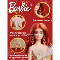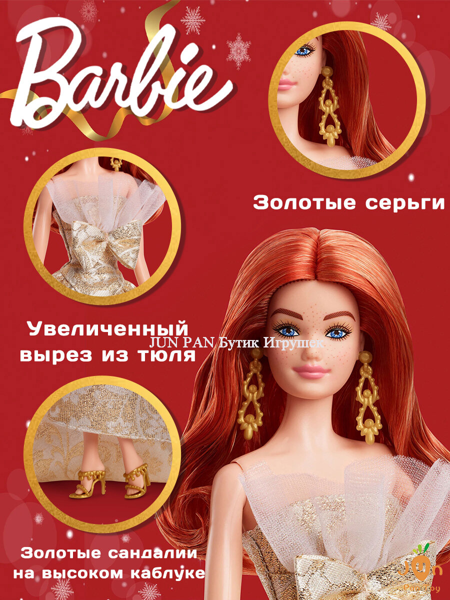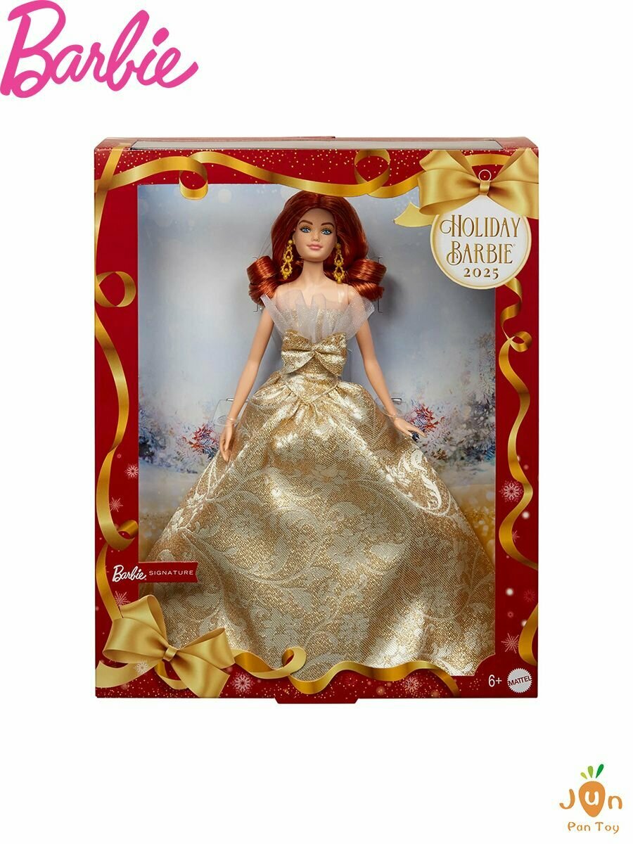 Купить Кукла Barbie Рождественская Mattel Barbie Signature 2025 Holiday Doll JBJ04 / Модная Барби с рыжими волосами, в серебряном и золотом платье, подходит для детей от 6 лет и старше с доставкой по всей России.