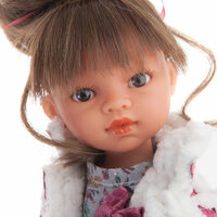Кукла выполнена из гипоаллергенного винила высокого качества с бархатистой поверхностью, что делает ее безопасной для детей. У куклы сияющие карие глаза с длинными ресницами, искусно приклеенными вручную.