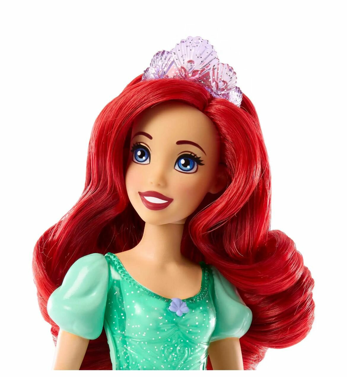 Кукла Ариэль, вдохновленная персонажем любимого диснеевского мультфильма «Русалочка», готова к приключениям! Наряд куклы включает в себя блестящий топ и съемную юбку с уникальным узором. Аксессуары идеально дополняют образ. Длинные волосы можно укладывать и расчесывать. Идеальный подарок для детей, чтобы они могли разыграть свои любимые моменты из фильмов или придумать собственные истории.