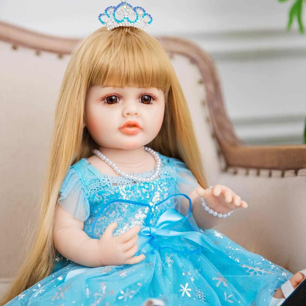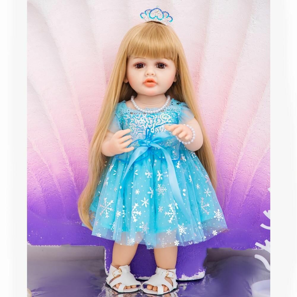 Представляем вашему вниманию потрясающую реборн куклу, которая станет любимым другом для вашей дочери! Эта кукла с длинными светлыми волосами, заплетёнными в две косички, облачена в нарядное голубое платье, усеянное блестящими снежинками, и дополнена стильной голубой короной. С её белыми сандалиями, она выглядит просто волшебно! Большие голубые глаза и пушистые ресницы придают ей дополнительную привлекательность, а качественные материалы обеспечивают долговечность игрушки. Идеальный подарок! Эта реборн кукла станет не только любимой игрушкой для вашей дочери, но и стильным украшением интерьера. Она поставляется в красивой коробке, что делает её отличным подарком на день рождения или любой другой праздник. Не упустите возможность порадовать свою дочку, внучку, младшую сестру или племянницу этой замечательной куклой! Закажите свою реборн куклу прямо сейчас и сделайте их счастливыми!