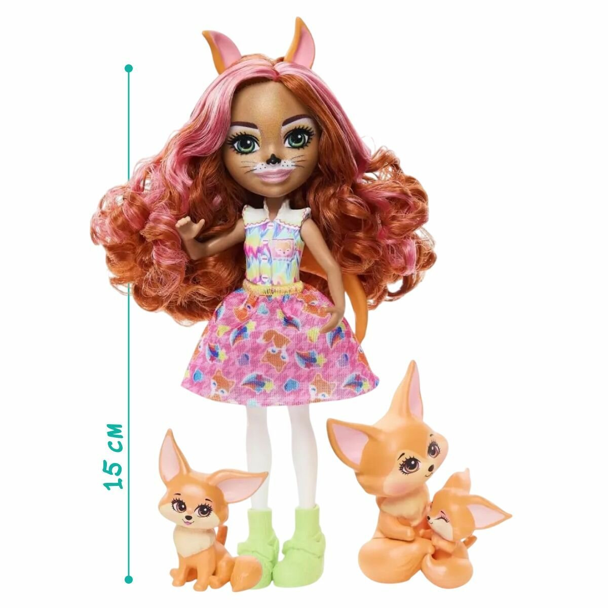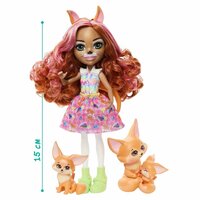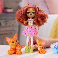 - Коллекция кукол Enchantimals, Семейка лисиц Glam Party включает в себя 1 куклу (15 см) с съёмной одеждой и аксессуарами, а также 3 фигурки животных.