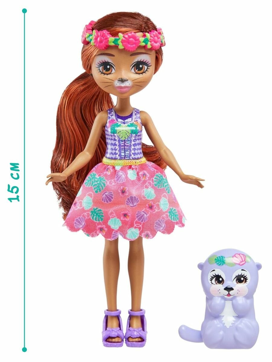 Кукла Онеда Выдра (Oneda Otter) из коллекции Enchantimals Sunshine Beach всегда вместе с питомцем Келпи (Kelpie) — они всегда вместе и дарят улыбки всем вокруг!