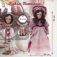 Купить Кукла фарфоровая Татьяна, L20 W20 H45 см 795017 REMECO на деревянной подставке с доставкой по всей России.