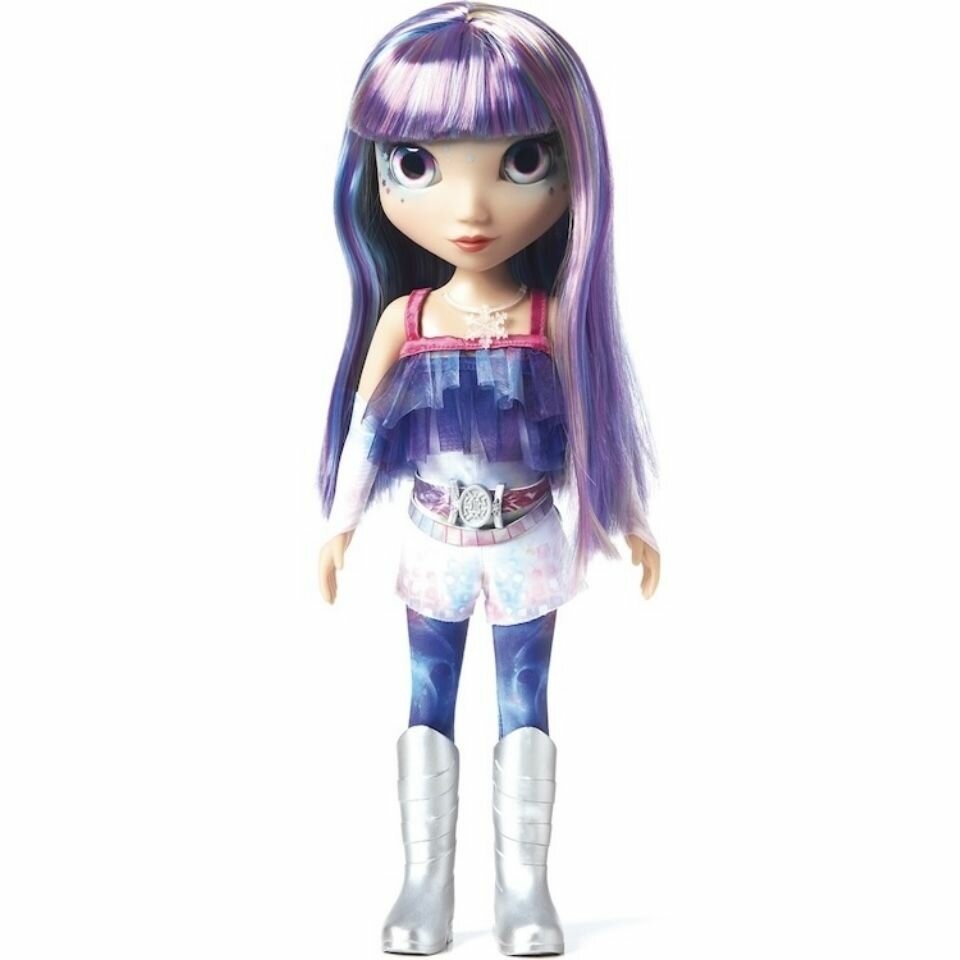 | Комплектация | кукла Nebulia (38 см), съёмные туфли из ПВХ, серебристые леггинсы, топ на бретелях, юбка из фиолетовой органзы с принтом, темно-синий жакет-болеро, съёмный головной убор, браслеты и пояс, инкрустированный драгоценными стразами, полная история звёздочки Nebulia |