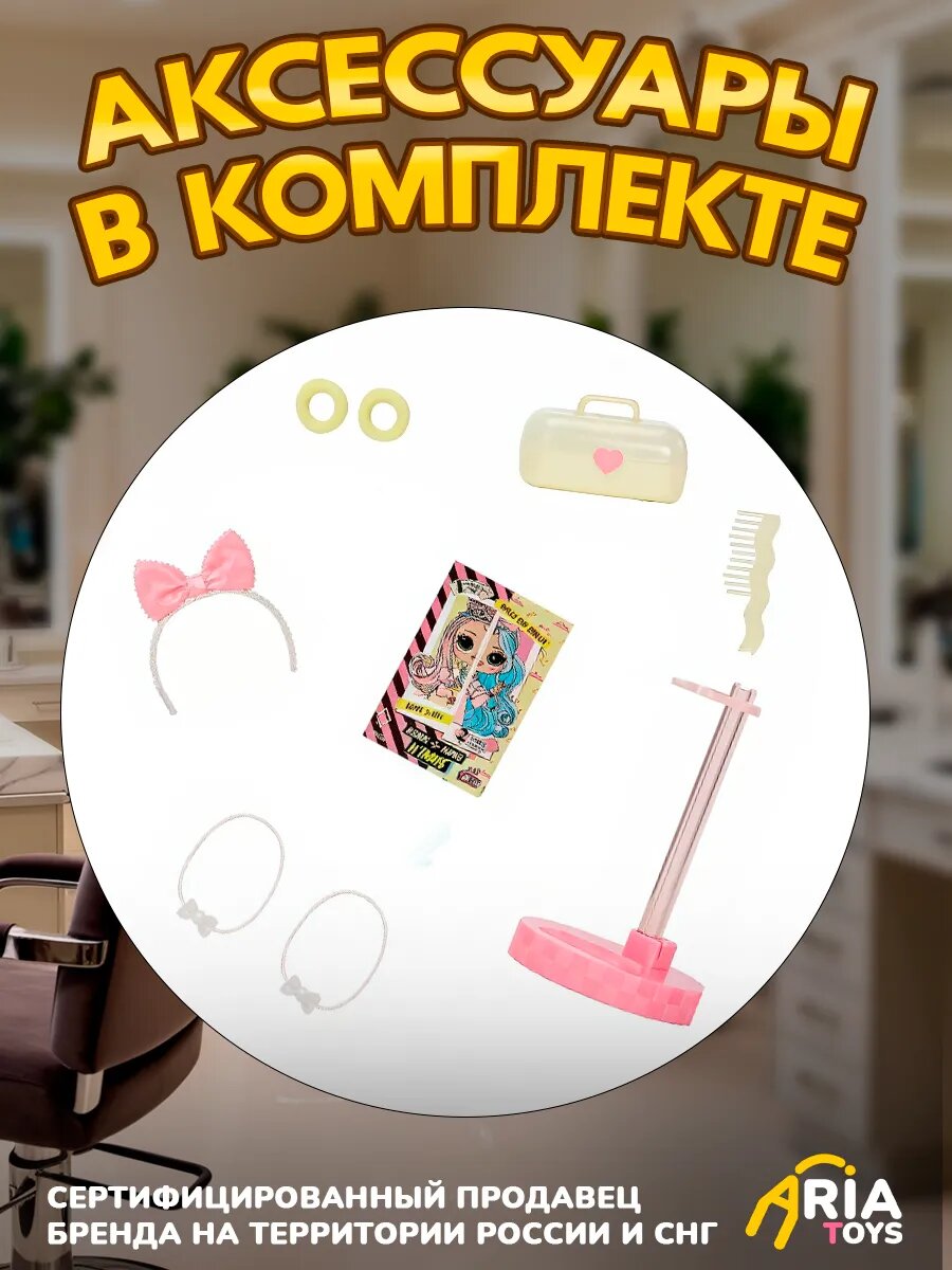 У куклы подвижные ручки и ножки, включая локти и кисти, длинные прошитые волосы. Игрушка изготовлена из полимерных материалов с элементами из текстиля и бумаги. Товар сертифицирован и безопасен для детского использования. Упаковка: коробка с окном 30х7х25см.