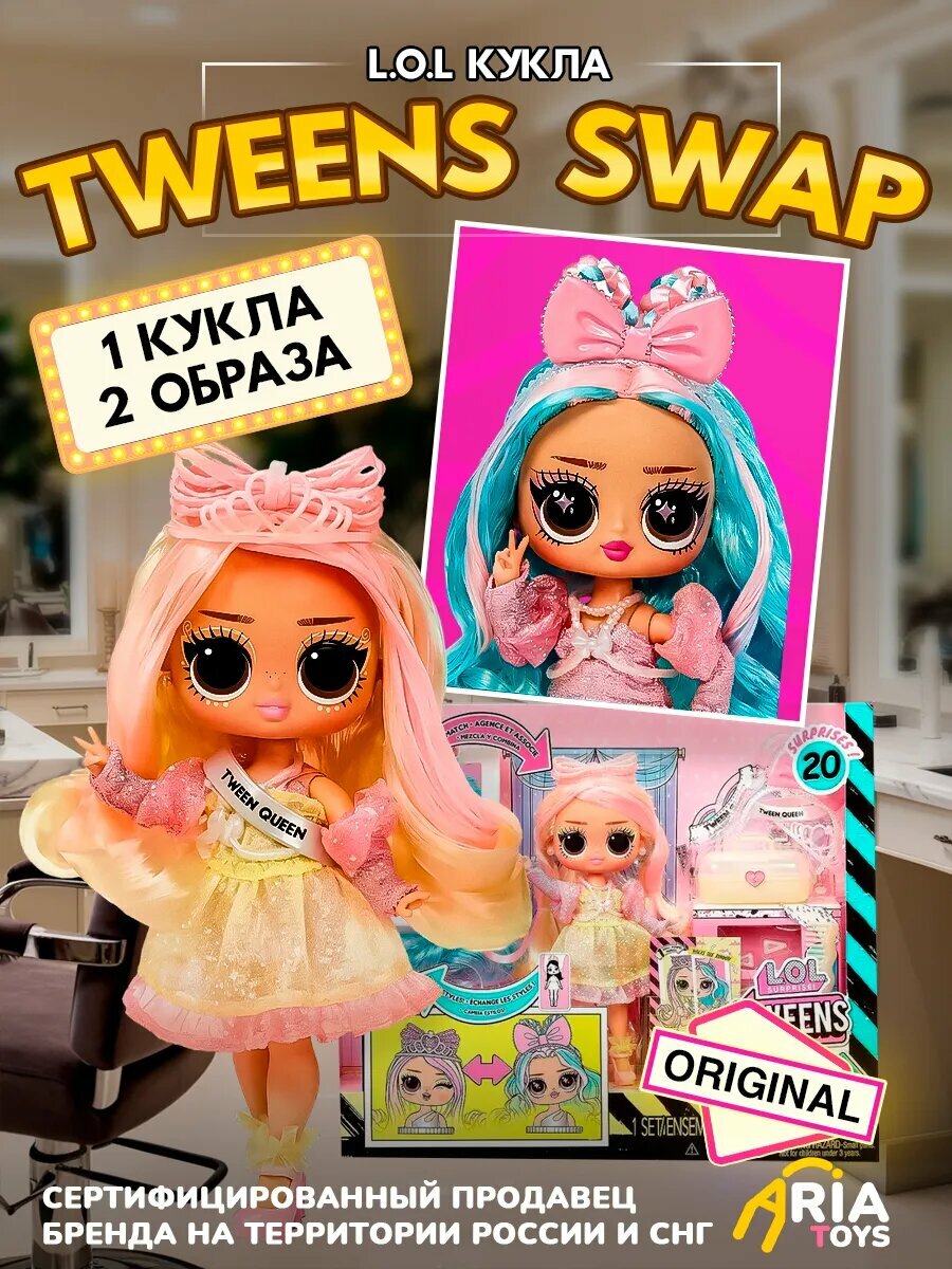 Встречай коллекцию ЛОЛ Твинс Свап со сменными образами! Это младшие сестры кукол ОМГ и старшие сестренки мини-кукол ЛОЛ Сюрпрайз, которые могут изменить свою внешность и эмоцию до неузнаваемости! У кукол Свап два совершенно разных образа в одном наборе, которые позволяют экспериментировать с их внешностью и делать еще больше причесок!