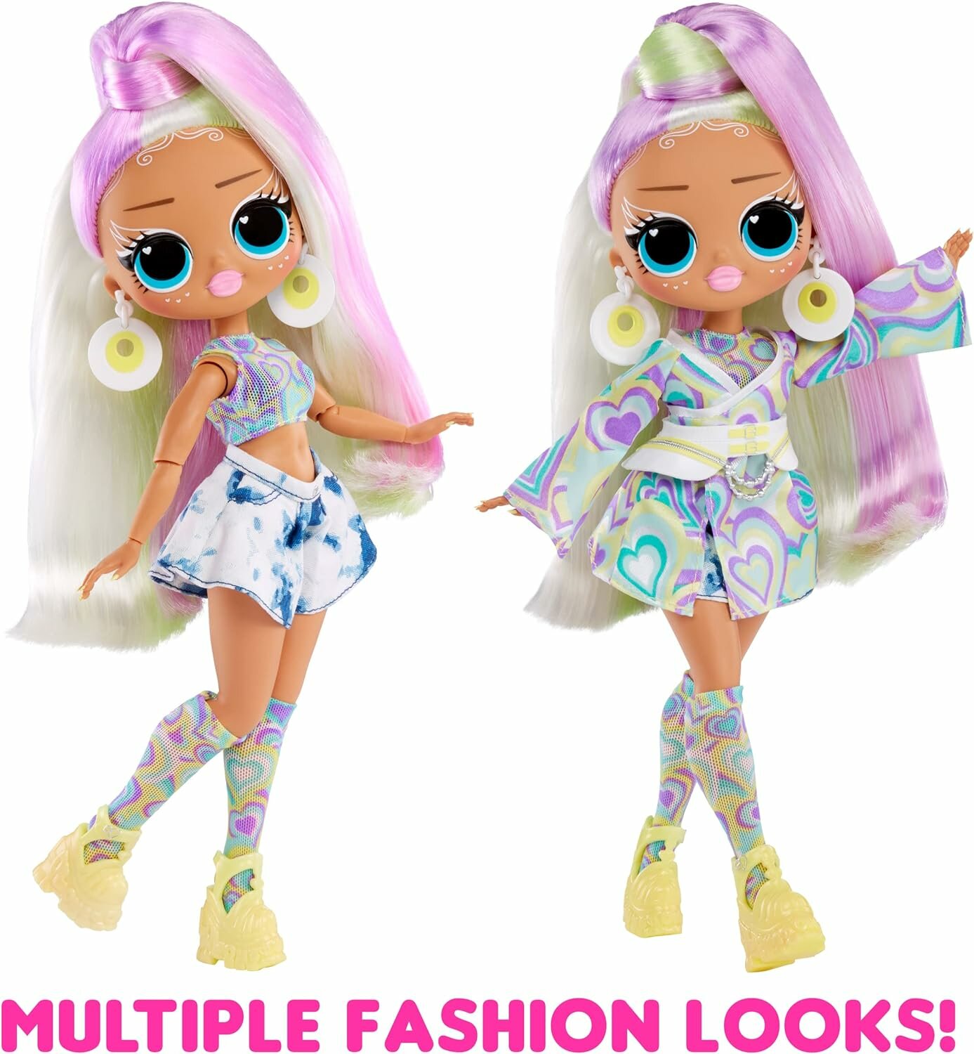 Есть еще больше взглядов, когда вы выводите ее на улицу и обнаруживаете их удивление от изменения цвета. особенности изменения цвета Возьмите Sunrise на улицу в любое время дня, будь то солнечно или облачно, или даже в помещении рядом с окном, и оцените ее гламурный макияж. Смотрите, как раскрываются драматические сюрпризы с изменением цвета волос и моды! Несколько модных образов Стильное кимоно и высокие носки Санрайз украшены декоративными деталями, которые оживают при воздействии света, а ее шикарные туфли резко меняют цвет с желтого на розовый. бесконечные преобразования Вы можете повторять изменения цвета снова и снова! Вернитесь в дом, чтобы вернуть Санрайз ее первоначальный вид, и выйдите на улицу или к окну, чтобы снова испытать ее великолепные превращения. RUNWAY READY Оденьте Санрайз в ее единственную в своем роде одежду и аксессуары, которые демонстрируют ее богемный стиль, включая стильное кимоно, модные высокие носки и модные шорты с принтом тай-дай! У нее потрясающие черты лица, красивые волосы и множество поз. Профессиональный совет: руки снимаются для удобства одевания.