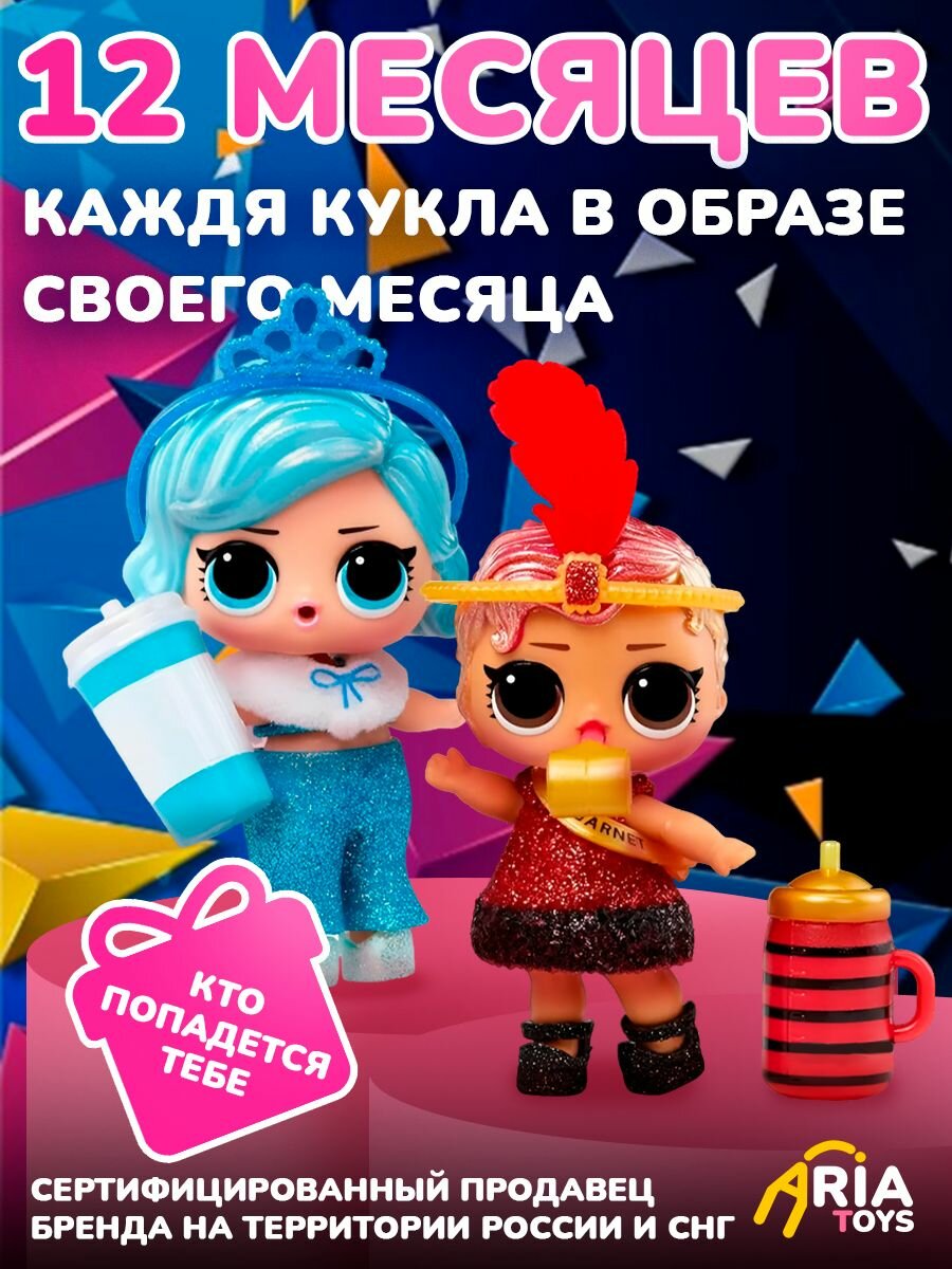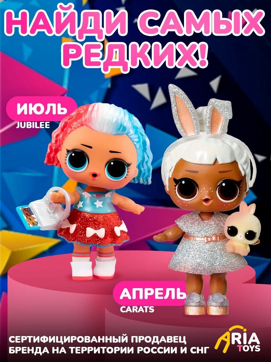 LOL Present Surprise — это новый детский игрушечный набор ЛОЛ с популярной куклой. Каждый оригинальный подарочный комплект - это интересный презент, упакованный в стильную коробку с бантом, разрисованную конфетти. Красивые маленькие куколки посвящены разным месяцам года и облачены в яркие наряды для вечеринки. Сможешь найти пупсика, соответствующего тому месяцу, в котором твой день рождения? Искупай или напои пупса, чтобы узнать, что он умеет! Они могут плакать, плеваться, писать или менять цвет в воде. Всего в серии 12 симпатичных фигурок, каждая из которых соответствует месяцам: Miss Garnet (январь), Violet (февраль), Aqua (март), Carats (апрель), Emerald Babe (май), Pearl (июнь), Jubilee (июль), Festive (август), Sweet Sapphire (сентябрь), Opal (октябрь), Pumpkin Spice (ноябрь), Holidaze (декабрь). Отличный выбор среди множества товаров! Можно собрать целую кукольную коллекцию из маленьких модных малышей! Предназначено для девочек 3 - 4 года и старше 5, 6, 7, 9, 10 лет. Также в игровом комплекте: секретное послание; праздничный головной убор - колпак; аксессуары; бутылочка; обувь; нарядная одежда - платье; игрушка. Сделайте подарочек своему ребенку! Он окажется приятной неожиданностью для детей на праздник! Какая коллекционная мини малышка будет внутри! Станет известно только после покупки и вскрытия упаковки! Не знаете что подарить дочке или внучке? Сюрпрайз Оригинал! Коробочка, скрывающая 8 сюрпризов! Игра с этими милыми крошками будет незабываемой! Вот то, что останется среди самых запоминающихся подарков!