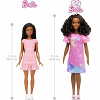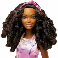 В этой очаровательной линейке представлены более крупные, гибкие куклы, которых легко ставить в разные позы. С этими милыми куклами дети могут придумывать бесчисленные истории о дружбе или моде. Добро пожаловать в сладкий мир кукол My First Barbie, где начинается дружба, а воображение может взлететь до небес! Дошкольники могут играть, учиться и практиковать навыки с куклами и игровыми наборами My First Barbie. Кукла Deluxe My First Barbie поставляется с двумя нарядами и множеством ярких аксессуаров с двумя темами: вечеринка или пижамная вечеринка. Кукла изготовлена из гибкого материала, благодаря чему дошкольники легко могут держать ее в руке, носить и одевать. Атласное вечернее платье, дополнено резинкой для волос, ожерельем, сумочкой в форме банта и туфлями на высоком каблуке. Простая застежка идеально подходит для маленьких ручек, что делает процесс одевания легким и увлекательным для малышей. Входящая в комплект большая щетка помогает расчесывать и укладывать волосы куклы Барби, а также тренирует ловкость и учит детей заботиться о себе! Ночная рубашка, повязка на голову с бантиком, повязка на голову с единорогом и тапочки на каблуке побуждают выдумывать разные приключения.
