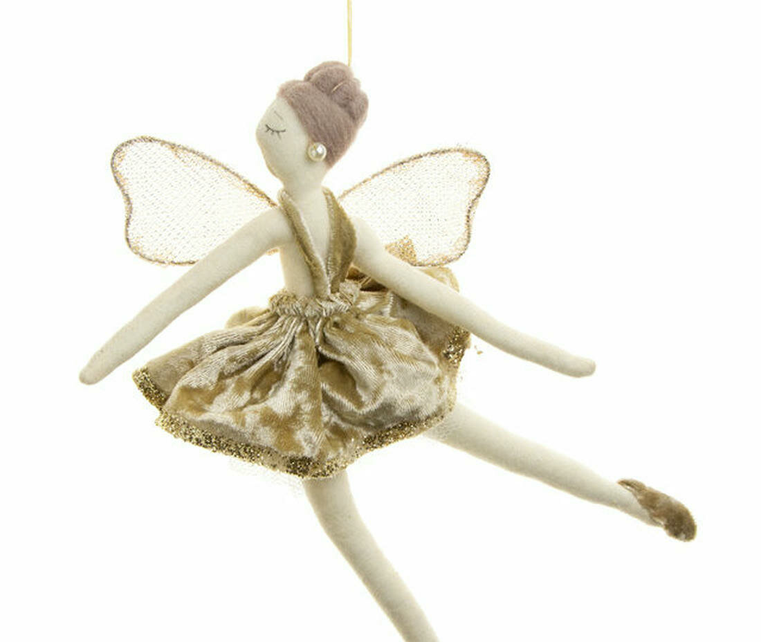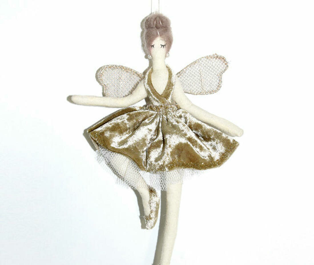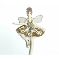 Кукла на ёлку, текстиль, бежевая золотистая, 24 см, Due Esse Christmas