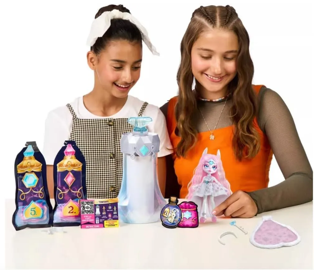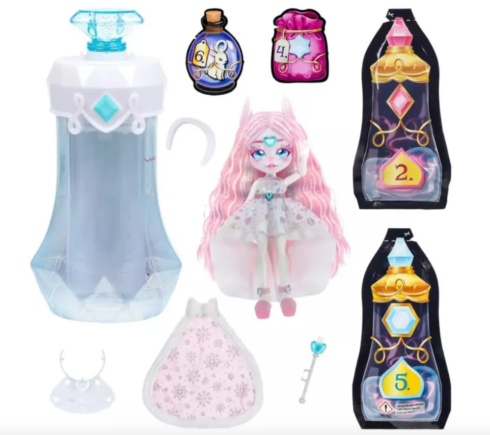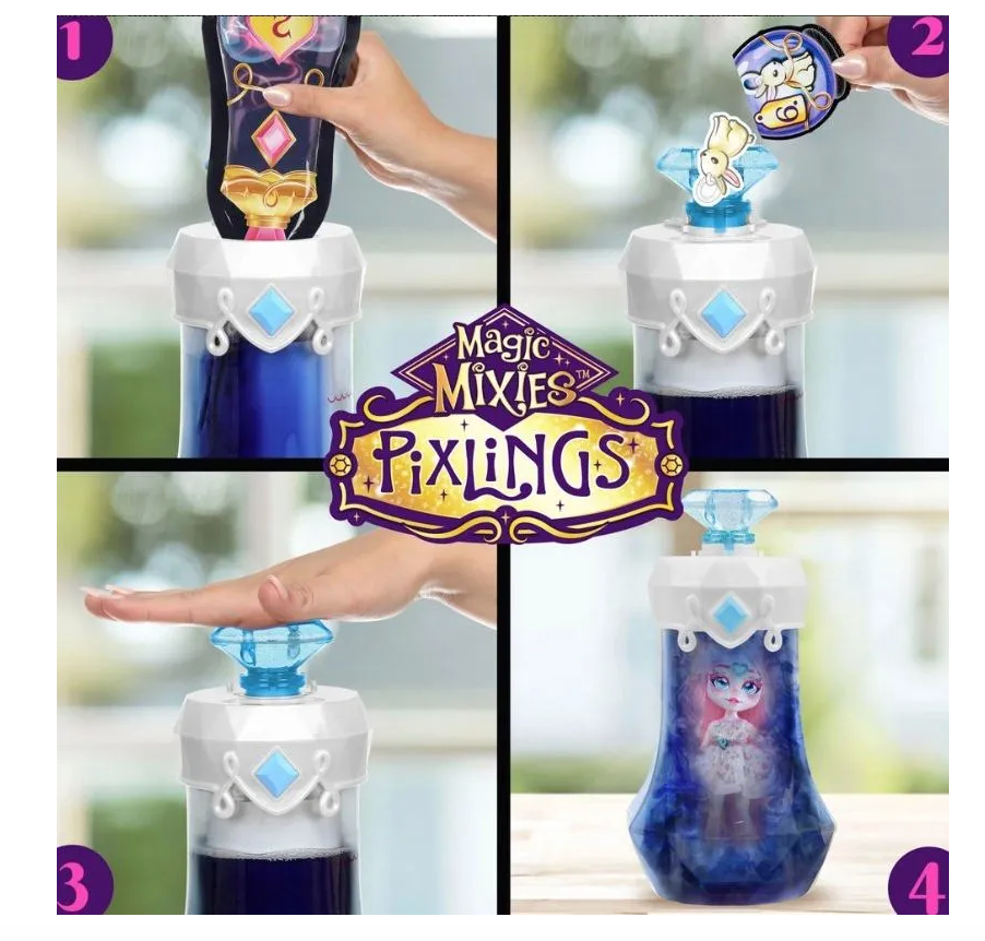 Кукла Пикслинг Воскресное солнышко Кролик Винтер - Sunday Sunshine Magic Mixies Exclusive Pixling - Wynter The Bunny 14876. Смешайте зелье, и по волшебству появится кукла Пикслинг! Добавьте волшебные ингредиенты и наблюдайте, как ваш эликсир внутри бутылки приобретет темно-синий цвет, затем переверните и нажмите на кристал Crystal Gem… Произнесите волшебные слова «MAGICUS MIXUS» и приготовьтесь стать свидетелем настоящего волшебства! На ваших глазах синее зелье станет прозрачным, и в бутылке волшебным образом появится Пикслинг! Познакомьтесь с Пикслинг "Воскресное солнышко" - Кролик Винтер. В комплект входит: сосуд, кукла, 3 аксессуара для модных кукол, инструкция по эксплуатации, руководство для коллекционеров, набор ингредиентов для зелья (одноразовый белый шипучий порошок).