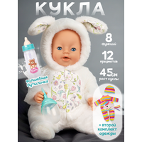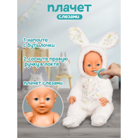 Пупс кукла ростом 45 см. одета в пушистый белый комбинезон с белыми ушками. Одежда выполнена из качественных материалов в приятных приглушенных тонах и легко снимается и надевается, благодаря липучкам.