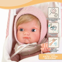 Малютка Глаша в сумочке-переноске - виниловая кукла пупс размером 21 см испанского бренда Мунекас Доллс антонио хуан. У куклы сияющие серые глаза и милое личико. Густые светлые волосы можно расчёсывать. Озорная малышка полностью выполнена из гипоаллергенного винила высокого качества. Ручки и ножки у куклы подвижные, она - девочка (есть гендерные признаки). Одета в свитер и трусики, на голове шапочка. В комплекте текстильная сумочка-переноска. Купить виниловую куклу Глашу - сделать прекрасный запоминающийся подарок девочке на день рождения и к празднику. Замечательная кукла, подарит ребенку важный опыт заботы, любви и ответственности. Кукла упакована в фирменную подарочную коробку с крышкой.