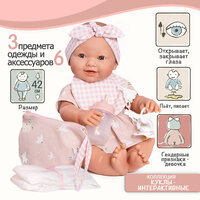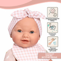 Кукла-пупс реборн интерактивная виниловая Antonio Juan 50393 Мия Мария – это очаровательная интерактивная кукла размером 42 см от испанского бренда Мунекас Доллс Антонио Хуан. Кукла стильно одета и имеет в комплекте соску с фирменным логотипом бренда, бутылочку и памперс.