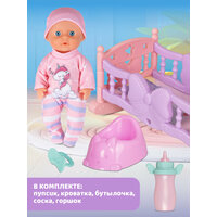 В комплекте с куклой идет все необходимое для ухода за малышом: удобная бутылочка для кормления, горшочек, успокаивающая пустышка и кроватка. Ваша дочка сможет полностью погрузиться в мир заботы о своем "ребенке", развивая ответственность и чуткость. Когда приходит время отдыха, куколку можно убаюкать в кроватке-качалке, которая плавно покачивается.