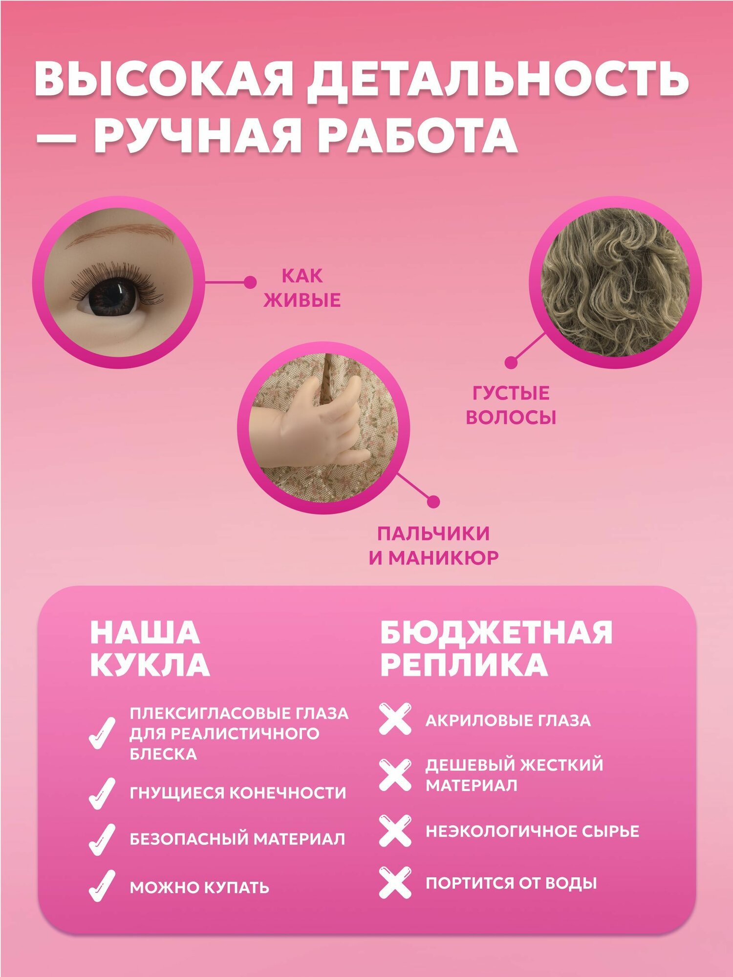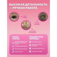 Кукла выполнена из высококачественного пластика и винила, что позволяет максимально приблизить ее к жизни. Ее реалистичная внешность и очаровательные глазки, которые не закрываются, заставят вашу девочку поверить, что она настоящая, как живая.