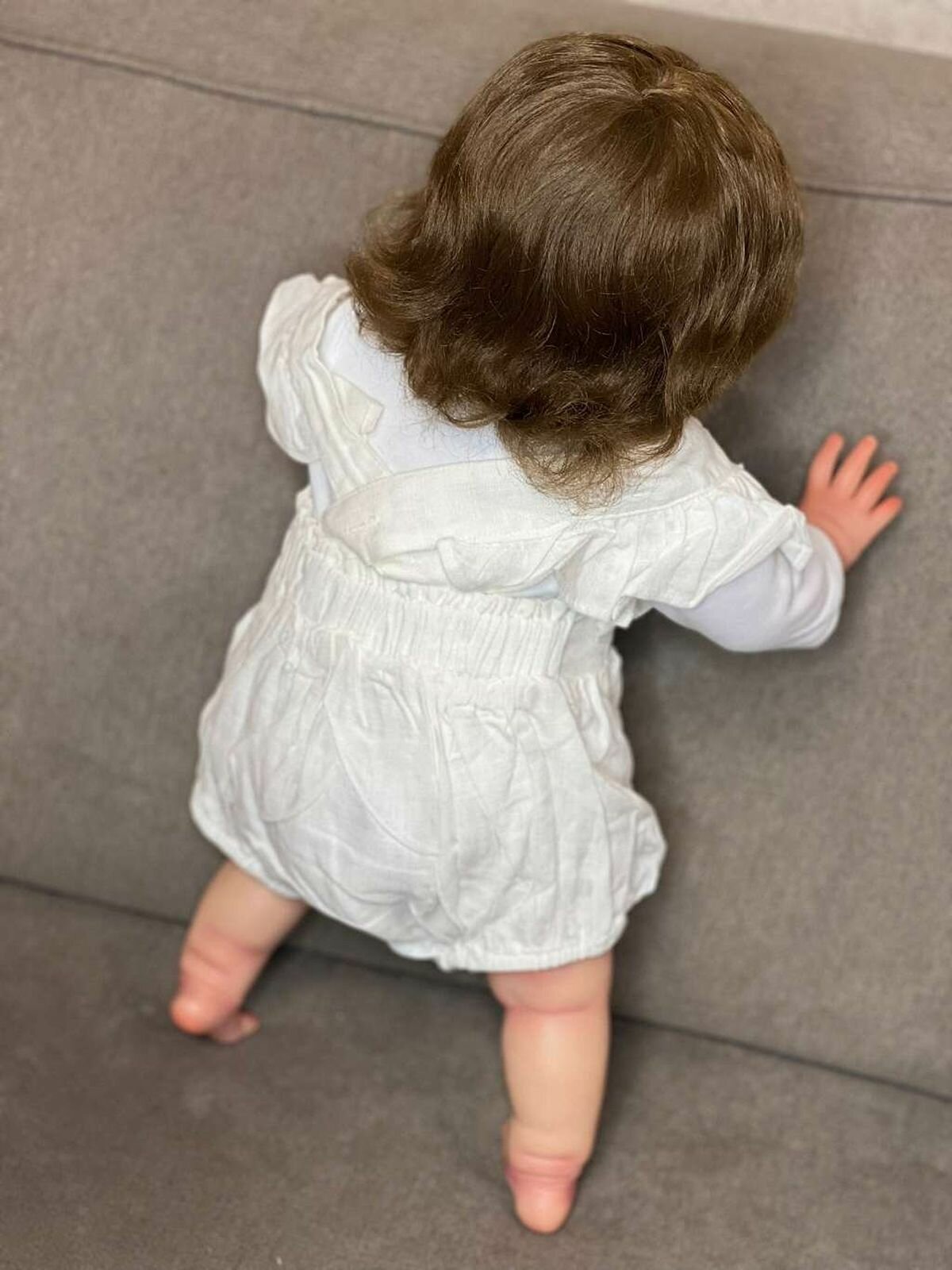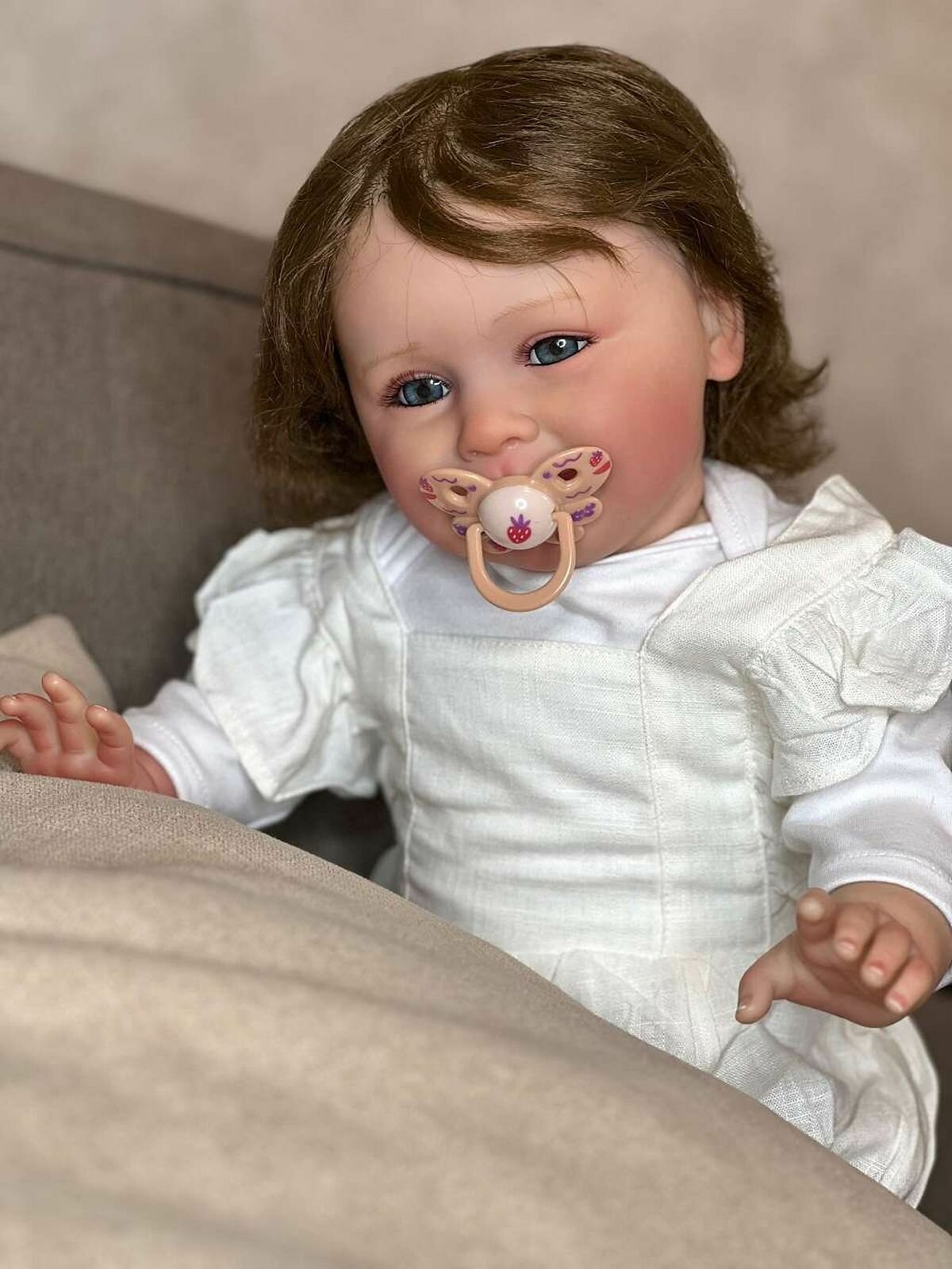 Кукла Реборн от фабрики NPK-TOYS. Девочка, тело мягко-набивное; ручки, ножки и голова из винил-силикона, все части тела подвижны. Кукла не ароматизирована. Шатенка, волосы очень мягкие, максимально приближены к натуральным (не парик, прошивка по всей голове мелкими прядями). Кукла очень реалистичная, по всему телу имеются складочки, как у настоящего ребенка, покраснения (ручная роспись). Выразительные акриловые глазки (не закрываются), обрамлены пушистыми ресницами. Глазки темные у каждой со своим оттенком (без выбора). Одета - боди белый. В комплекте - бутылочка для кормления, магнитная соска (дизайн и размер может отличаться). Сертификат о рождении, где Вы самостоятельно впишите все данные. Рост - 52см. Упаковка - пакет (без подарочной коробки). Производитель - Китай (NPK-TOYS).