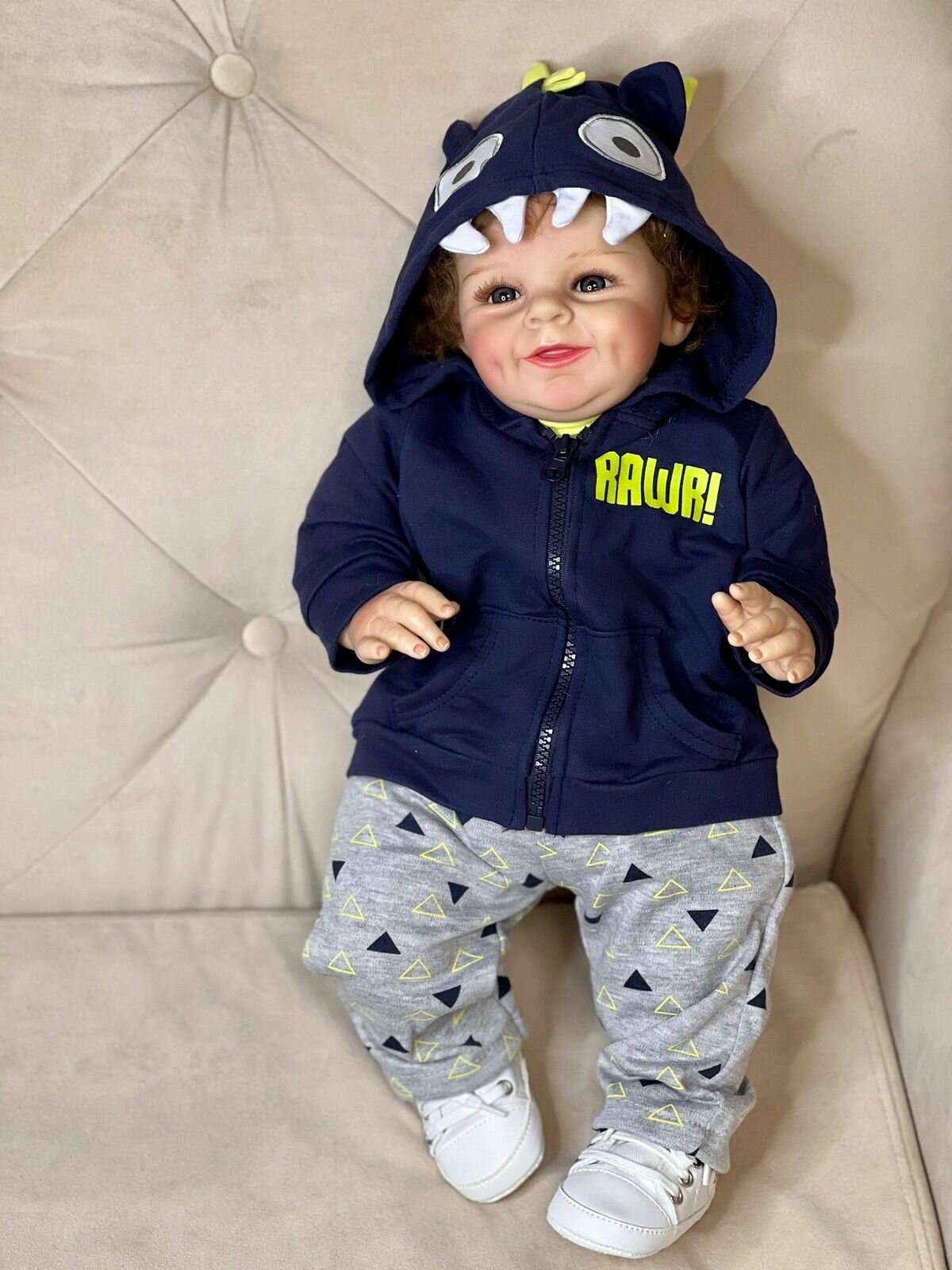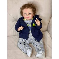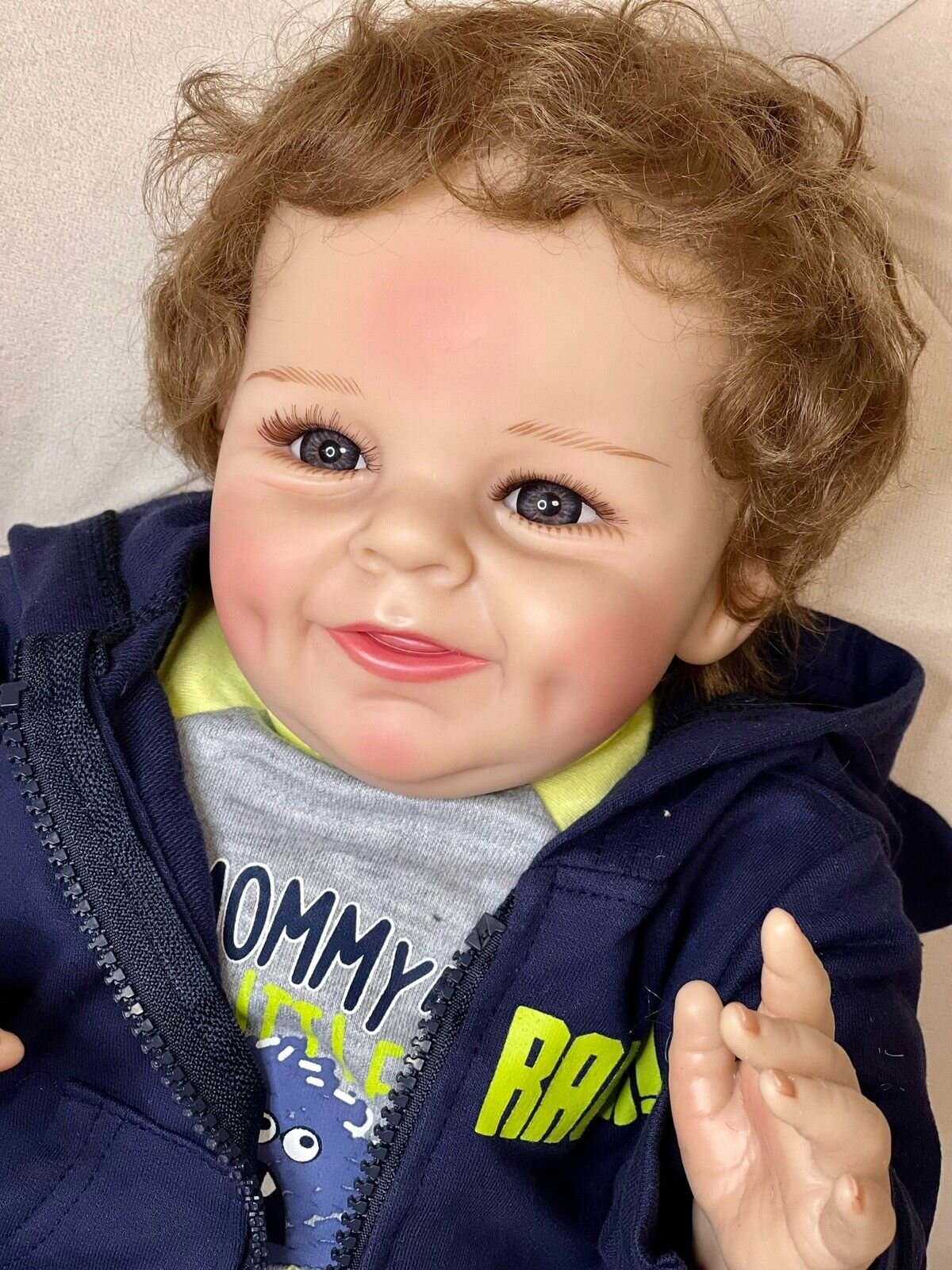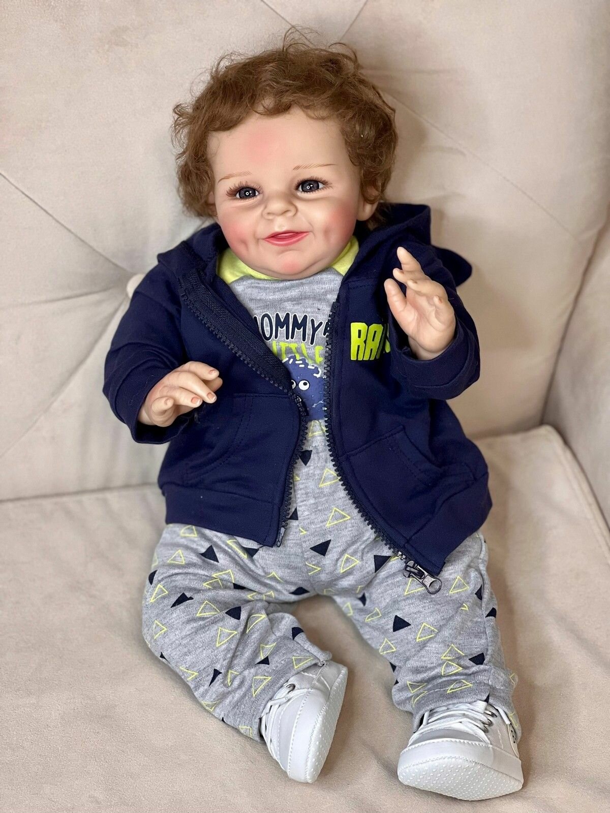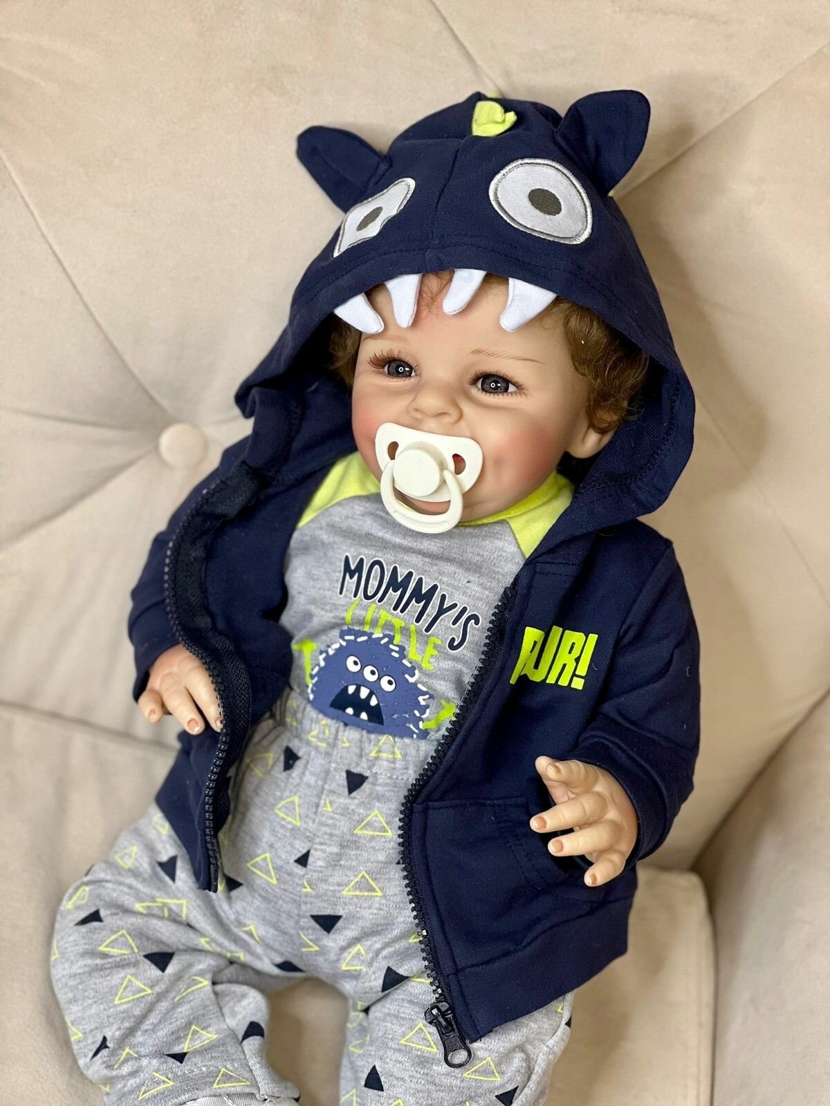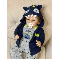 Кукла Реборн от фабрики NPK-TOYS. Кукла реборн. Мальчик, тело мягко-набивное; ручки, ножки и голова из винил-силикона, все части тела подвижны (ручки и ножки двигаются за счет дисков). Кукла не ароматизирована. Шатен, волосы очень мягкие, максимально приближены к натуральным (не парик, прошивка по всей голове мелкими прядями). Кукла очень реалистичная, по всему телу имеются складочки, как у настоящего ребёнка, венки, покраснения (ручная роспись). Выразительные акриловые глазки (не закрываются), обрамлены пушистыми ресницами. Глазки тёмные у каждой со своим оттенком (без выбора). Одет - серый боди с принтом, серые штанишки, синяя ветровка с капюшоном, белые кеды. В комплекте - памперс, бутылочка для кормления, магнитная соска (дизайн и размер может отличаться). Сертификат о рождении, где Вы самостоятельно впишите все данные. Рост - 55см. Упаковка - пакет (без подарочной коробки). Производитель - Китай (NPK-TOYS).