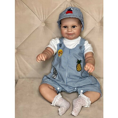 Кукла от фабрики NPK-TOYS. Мальчик, тело мягко-набивное; ручки, ножки и голова из винил-силикона, все части тела подвижны (ручки и ножки двигаются за счет дисков). Кукла не ароматизирована. Милый ребенок с нарисованными волосами. Кукла очень реалистичная, по всему телу имеются складочки, как у настоящего ребёнка, венки, покраснения (ручная роспись). Выразительные акриловые глазки (не закрываются), обрамлены пушистыми ресницами. Глазки тёмные у каждой со своим оттенком (без выбора). Одет - белый боди, сине-белый полосатый комбинезон, белые носочки, сине-белая полосатая кепка. В комплекте - памперс, бутылочка для кормления, магнитная соска (дизайн и размер может отличаться). Сертификат о рождении, где Вы самостоятельно впишите все данные. Рост - 60см. Упаковка - пакет (без подарочной коробки). Производитель - Китай (NPK-TOYS).
