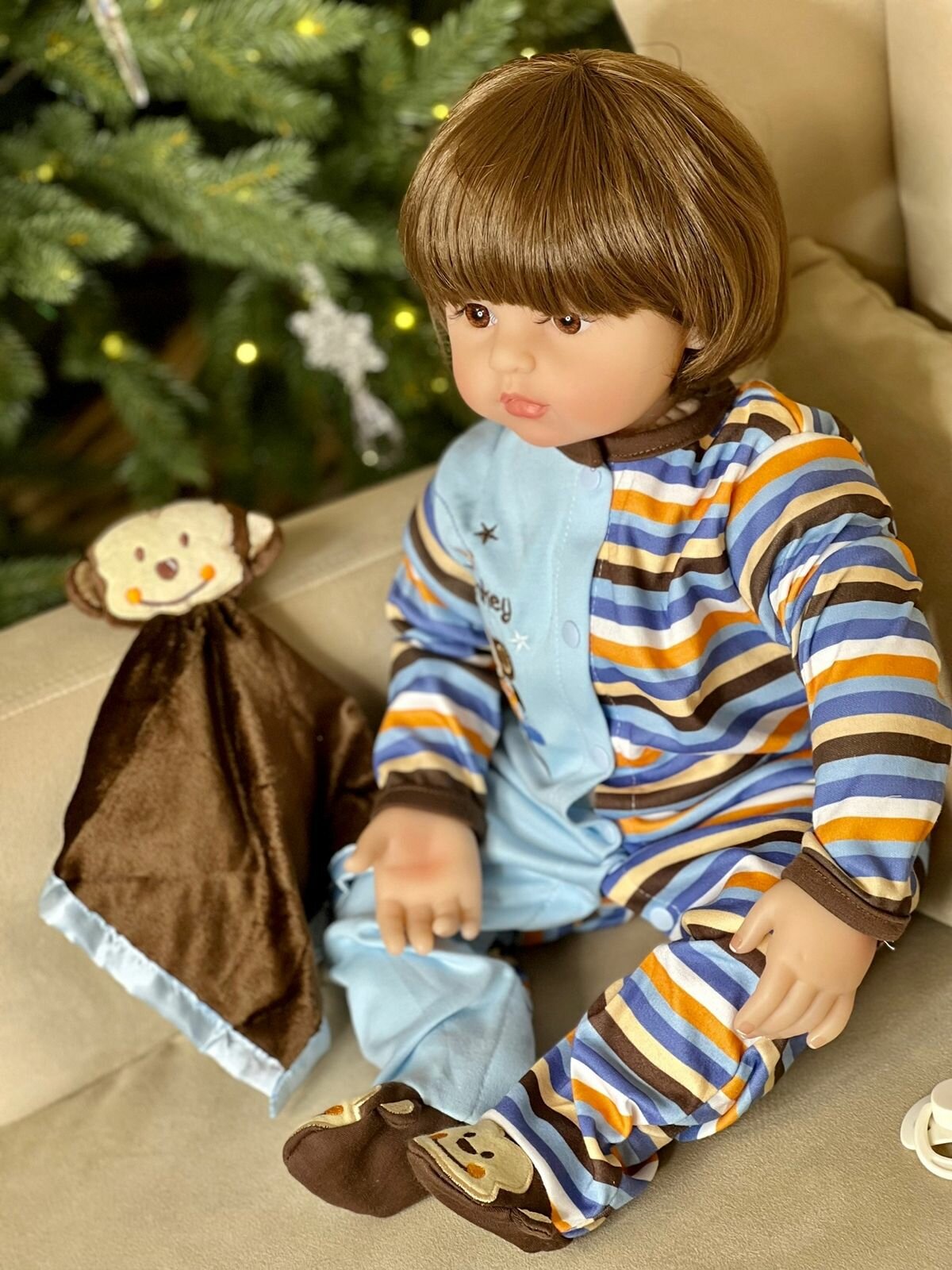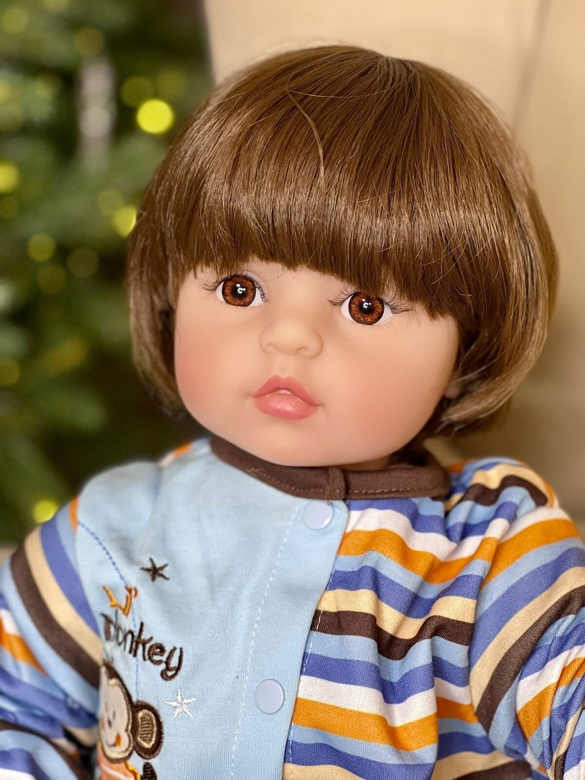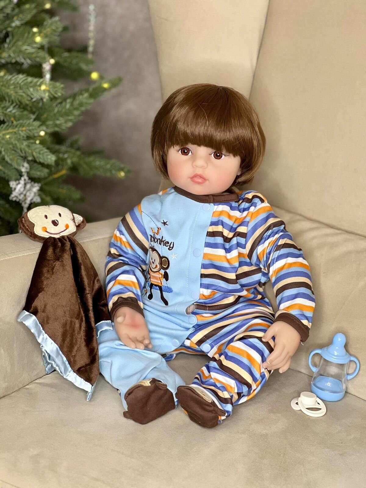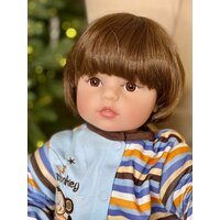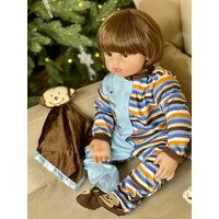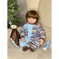 Кукла Реборн от фабрики NPK-TOYS. Мальчик, тело мягко-набивное; ручки, ножки и голова из винил-силикона, все части тела подвижны (ручки и ножки двигаются за счет дисков). Кукла не ароматизирована. Шатен, волосы мягкие (парик). Кукла очень реалистичная, по всему телу имеются складочки, как у настоящего ребенка, покраснения (ручная роспись). Выразительные акриловые глазки (не закрываются), обрамлены пушистыми ресницами. Глазки темные у каждой со своим оттенком (без выбора). Одет - цветной слип. В комплекте - подгузник, бутылочка для кормления, магнитная соска. Сертификат о рождении, где Вы самостоятельно впишите все данные. Рост - 60см. Упаковка - пакет (без подарочной коробки). Производитель - Китай (NPK-TOYS).