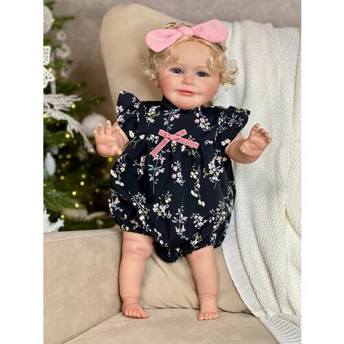 Кукла Реборн от фабрики NPK-TOYS. Девочка, тело мягко-набивное; ручки, ножки и голова из винил-силикона, все части тела подвижны (ручки и ножки двигаются за счет дисков). Кукла не ароматизирована. Блондинка, волосы очень мягкие, максимально приближены к натуральным (не парик, прошивка по всей голове мелкими прядями). Кукла очень реалистичная, по всему телу имеются складочки, как у настоящего ребенка. Выразительные акриловые глазки (не закрываются), обрамлены пушистыми ресницами. Глазки темные у каждой со своим оттенком (без выбора). Одета - черный боди с рисунком, на голове повязка. В комплекте - подгузник, бутылочка для кормления, магнитная соска (дизайн и размер может отличаться). Сертификат о рождении, где Вы самостоятельно впишите все данные. Рост - 60см. Упаковка - пакет (без подарочной коробки). Производитель - Китай (NPK-TOYS).