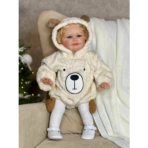 Кукла Реборн от фабрики NPK-TOYS. Девочка, тело мягко-набивное; ручки, ножки и голова из винил-силикона, все части тела подвижны (ручки и ножки двигаются за счет дисков). Кукла не ароматизированна. Блондинка, волосы очень мягкие, максимально приближены к натуральным (не парик, прошивка по всей голове мелкими прядями). Кукла очень реалистичная, по всему телу имеются складочки, как у настоящего ребенка. Выразительные акриловые глазки (не закрываются), обрамлены пушистыми ресницами. Глазки темные у каждой со своим оттенком (без выбора). Одета - светлый, меховой боди с капюшоном, белые чулки, белые пинетки. В комплекте - подгузник, бутылочка для кормления, магнитная соска (дизайн и размер может отличаться). Сертификат о рождении, где Вы самостоятельно впишите все данные. Рост - 60см. Упаковка - пакет (без подарочной коробки). Производитель - Китай (NPK-TOYS).