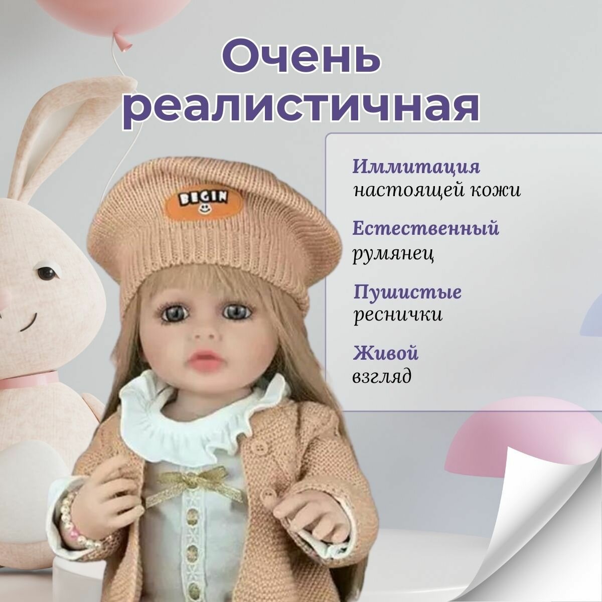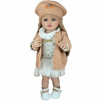 Кукла reborn Силиконовая 55 см блондинка в платье и берете
