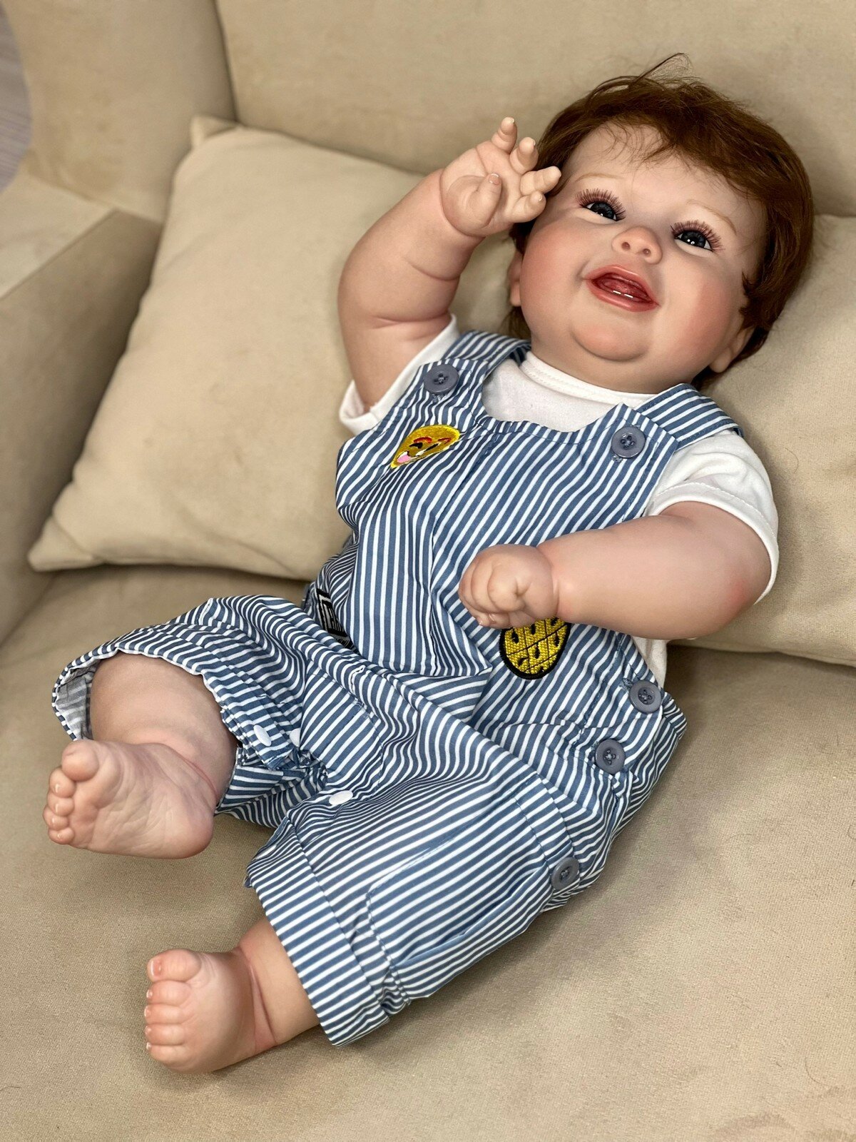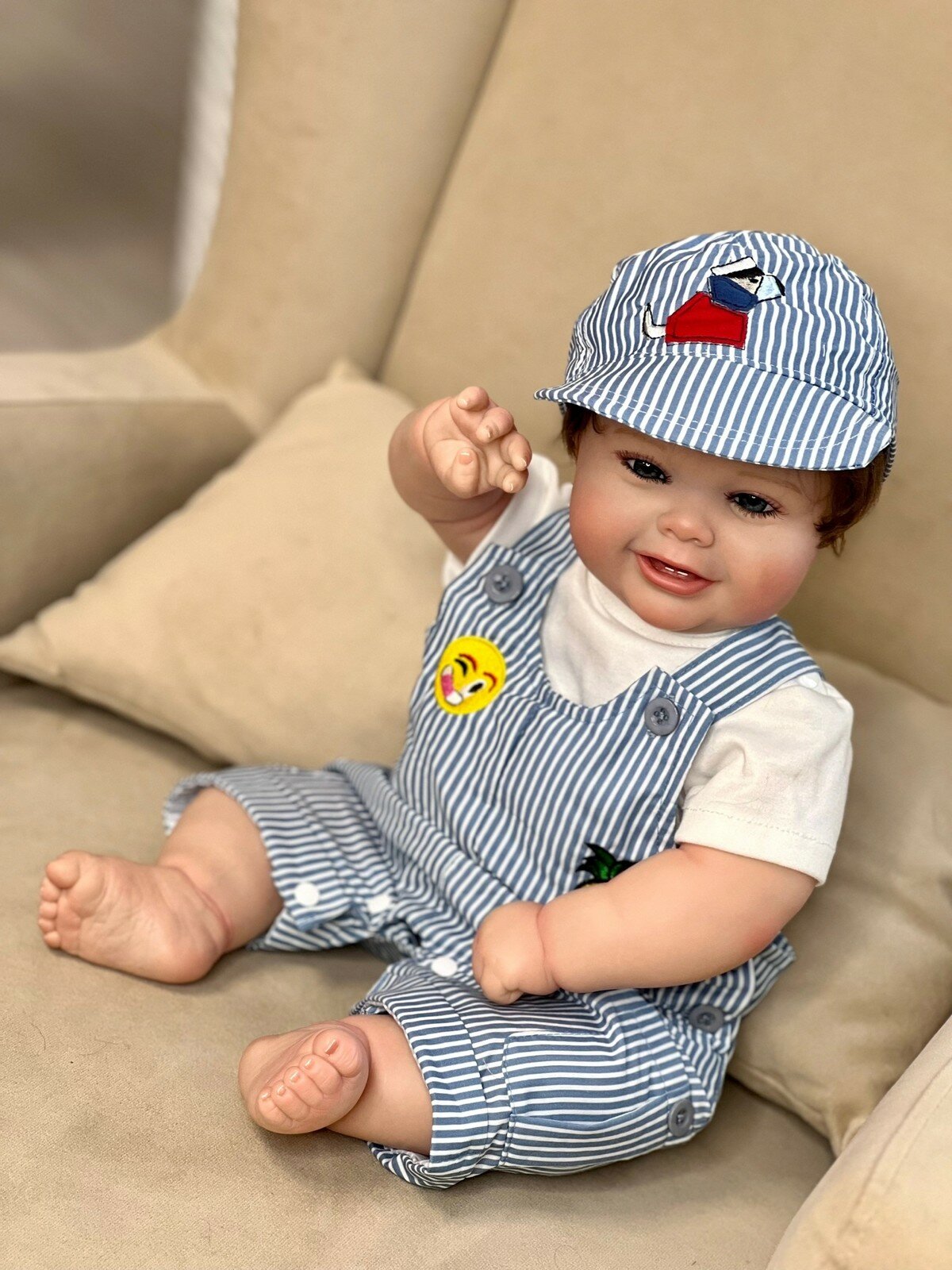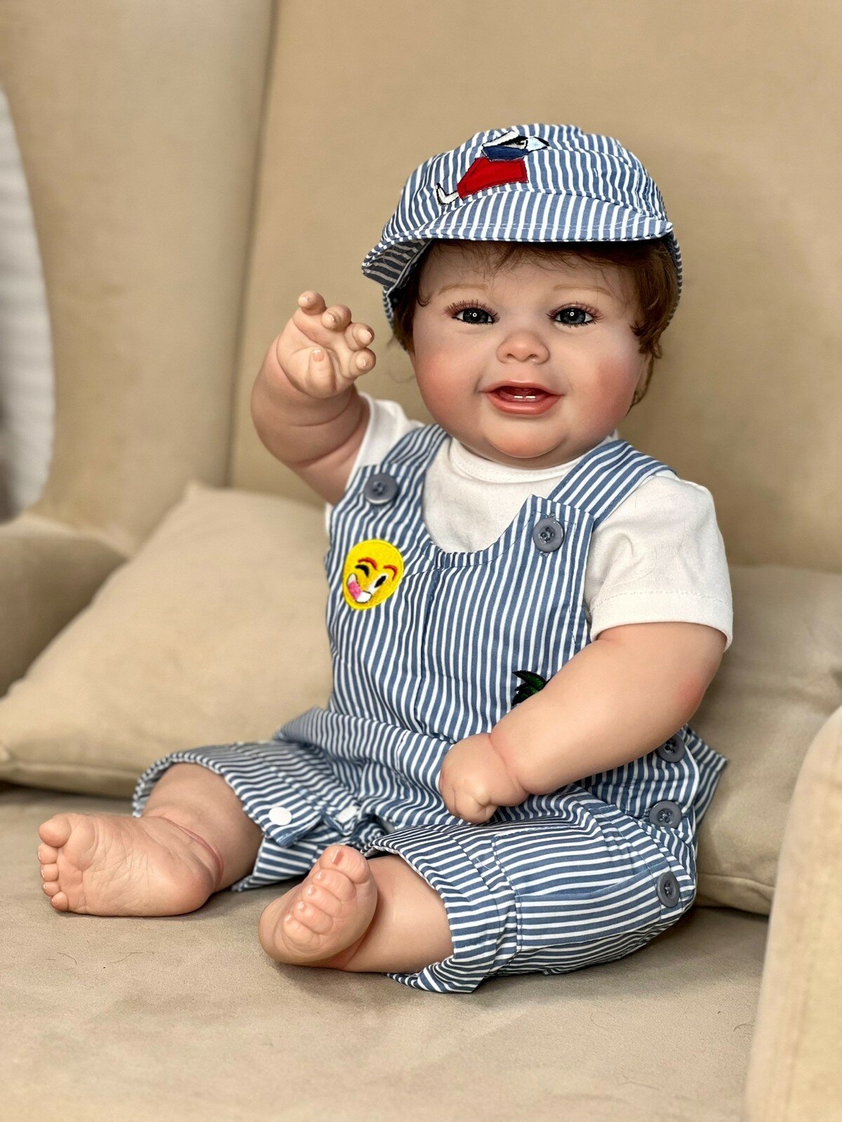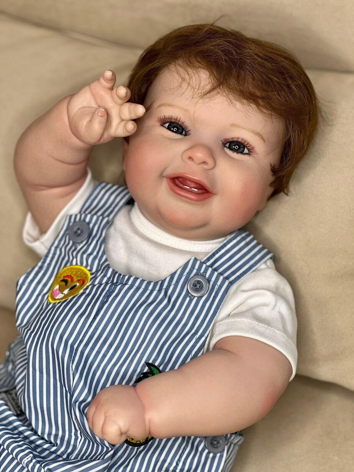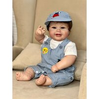 Кукла Реборн от фабрики NPK-TOYS. Мальчик, полностью из винил-силикона, все части тела подвижны, с анатомическими половыми признаками. Кукла не ароматизирована. Шатен, волосы очень мягкие, максимально приближены к натуральным (не парик, прошивка по всей голове мелкими прядями). Кукла очень реалистичная, по всему телу имеются складочки, как у настоящего ребёнка, покраснения (ручная роспись). Выразительные акриловые глазки (не закрываются), обрамлены пушистыми ресницами. Глазки тёмные у каждой со своим оттенком (без выбора). Одет - белая футболка, полосатый полу-комбинезон, полосатая кепка. В комплекте - бутылочка для кормления, магнитная соска. Сертификат о рождении, где Вы самостоятельно впишите все данные. Рост - 50см. Упаковка - пакет (без подарочной коробки). Производитель - Китай (NPK-TOYS).