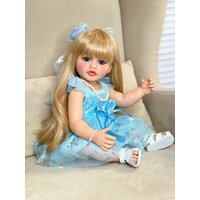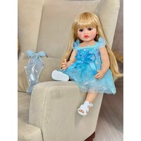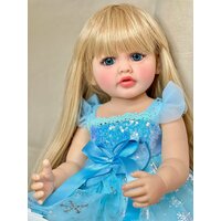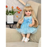 Кукла Реборн от фабрики NPK-TOYS. Девочка полностью из винил-силикона, все части тела подвижны, с анатомическими половыми признаками. Кукла не ароматизирована. Русая блондинка, волосы мягкие (парик). Кукла очень реалистичная, по всему телу имеются складочки, как у настоящего ребёнка, покраснения (ручная роспись). Выразительные акриловые глазки (не закрываются), обрамлены пушистыми ресницами. Глазки тёмные у каждой со своим оттенком (без выбора). Одета - белые рейтузики, голубое платье, белые сандалии. В комплекте - памперс, бутылочка для кормления, магнитная соска, бусы, браслет, диадема, заколка-бант. Сертификат о рождении, где Вы самостоятельно впишите все данные. Рост - 55см. Упаковка - пакет (без подарочной коробки). Производитель - Китай (NPK-TOYS).