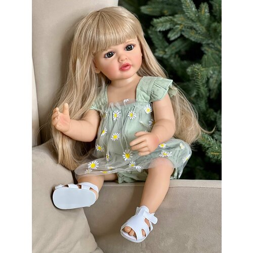 Кукла Реборн от фабрики NPK-TOYS. Девочка полностью из винил-силикона, все части тела подвижны, с анатомическими половыми признаками. Кукла не ароматизированна. Русая блондинка, волосы мягкие (парик). Кукла очень реалистичная, по всему телу имеются складочки, как у настоящего ребенка, покраснения (ручная роспись). Выразительные акриловые глазки (не закрываются), обрамлены пушистыми ресницами. Глазки темные у каждой со своим оттенком (без выбора). Одета - зеленый боди, зелегая панамка, белые сандалии. В комплекте - бутылочка для кормления, магнитная соска. Сертификат о рождении, где Вы самостоятельно впишите все данные. Рост - 55см. Упаковка - пакет (без подарочной коробки). Производитель - Китай (NPK-TOYS).
