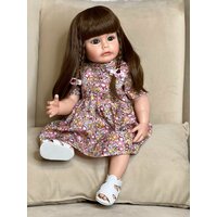 Кукла Реборн от фабрики NPK-TOYS. Девочка полностью из винил-силикона, все части тела подвижны, с анатомическими половыми признаками. Кукла не ароматизированна. Шатенка, волосы мягкие (парик). Кукла очень реалистичная, по всему телу имеются складочки, как у настоящего ребенка, покраснения (ручная роспись). Выразительные акриловые глазки (не закрываются), обрамлены пушистыми ресницами. Глазки темные у каждой со своим оттенком (без выбора). Одета - белые трусики, цветные платье, белое болеро, белые сандалии. В комплекте - бутылочка для кормления, магнитная соска. Сертификат о рождении, где Вы самостоятельно впишите все данные. Рост - 55см. Упаковка - пакет (без подарочной коробки). Производитель - Китай (NPK-TOYS).