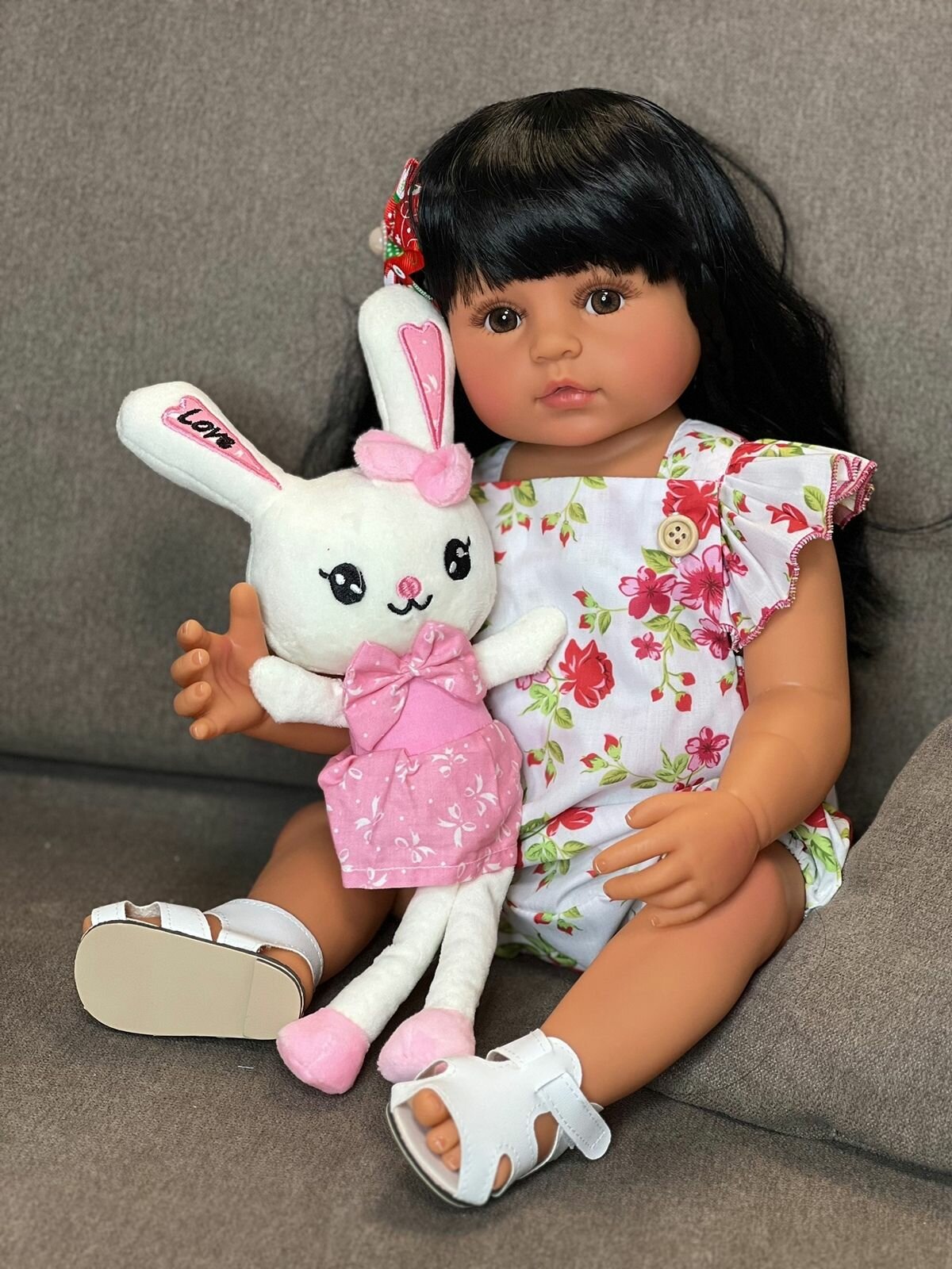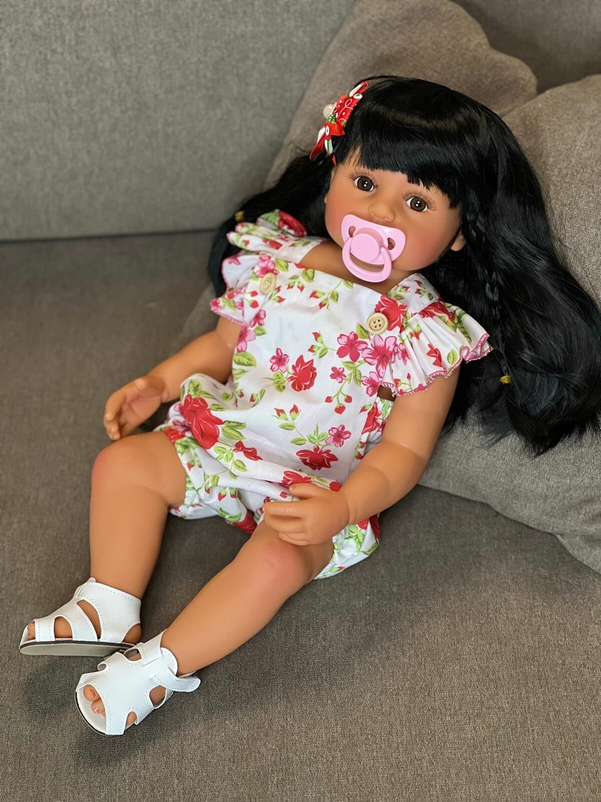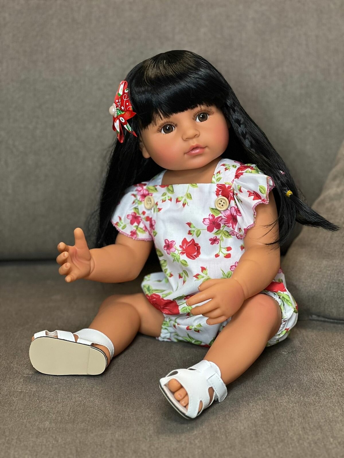 Кукла Реборн от фабрики NPK-TOYS. Девочка мулатка полностью из винил-силикона, все части тела подвижны, с анатомическими половыми признаками. Кукла не ароматизирована. Брюнетка, волосы очень мягкие, максимально приближены к натуральным. Кукла очень реалистичная, по всему телу имеются складочки, как у настоящего ребенка, венки, покраснения (ручная роспись). Выразительные акриловые глазки (не закрываются), обрамлены пушистыми ресницами. В комплекте - бутылочка для кормления, магнитная соска. Сертификат о рождении, где Вы самостоятельно впишите все данные. Рост - 55см. Упаковка - пакет (без подарочной коробки). Производитель - Китай (NPK-TOYS).
